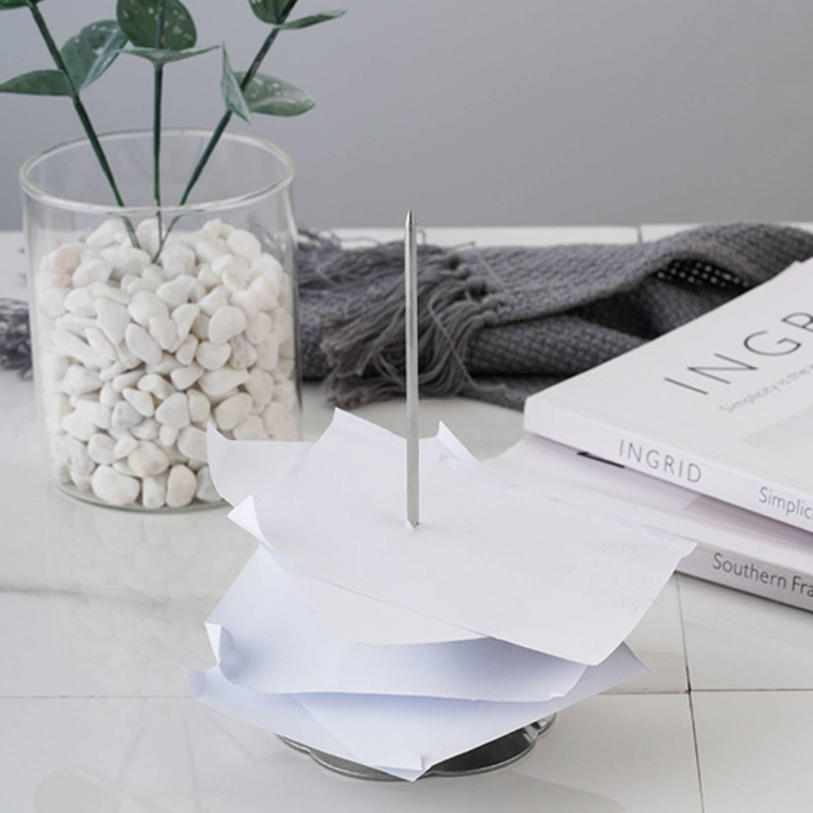 LE FORFAIT COMPREND: Vous recevrez 4 pièces de fourchette à billets en papier à tige droite en acier inoxydable argenté. TAILLE DU PRODUIT: Le diamètre de la base du support de pointe de fourche à billets est de 7 cm/2,8 pouces Contenu du paquet : 4x Accroche ticket Pic Ticket De Caisse 2 Piu00e8ces Mu00e9tal Note Pick, Pic De Ru00e9ception, Porte-Mu00e9moire, Porte-Embout En Papier Avec Base Ronde, Pour Restaurant Cuisine Hu00f4tel De Bureau (Noir Organisateur Ticket De Caisse Caractéristiques : La base circulaire de 7 cm permet à la restaurant bill holder de se tenir solidement et d'éviter de basculer, ce qui convient à divers environnements de travail tels que les bureaux et les comptoirs. Sécurité : La pointe acérée des porte mémo pour factures perce sans effort le papier, tandis que le capuchon de protection en caoutchouc empêche les coupures accidentelles, équilibrant ainsi la fonctionnalité et la sécurité opérationnelle. Assemblage rapide : La facture aiguille avec rond support base nécessite un assemblage simple (fixation de la goupille en acier inoxydable à la base) pour une utilisation immédiate sans étapes complexes. Omabeta Pointes pour oiseaux en acier inoxydable Pointes d'oiseaux en acier inoxydable, 5 pièces... JZK 35 cm Porte bon de commande, porte bons de commande à billes, Rail Matériau : Acier inoxydable Les fourchettes à billets permettent d'empiler plusieurs billets ou documents de manière ordonnée, ce qui permet d'organiser les papiers et d'éviter qu'ils ne s'éparpillent. Spécifications : Nom : Support ticket restaurant, Dimensions : 14 x 6,8 cm, Couleur : Argent