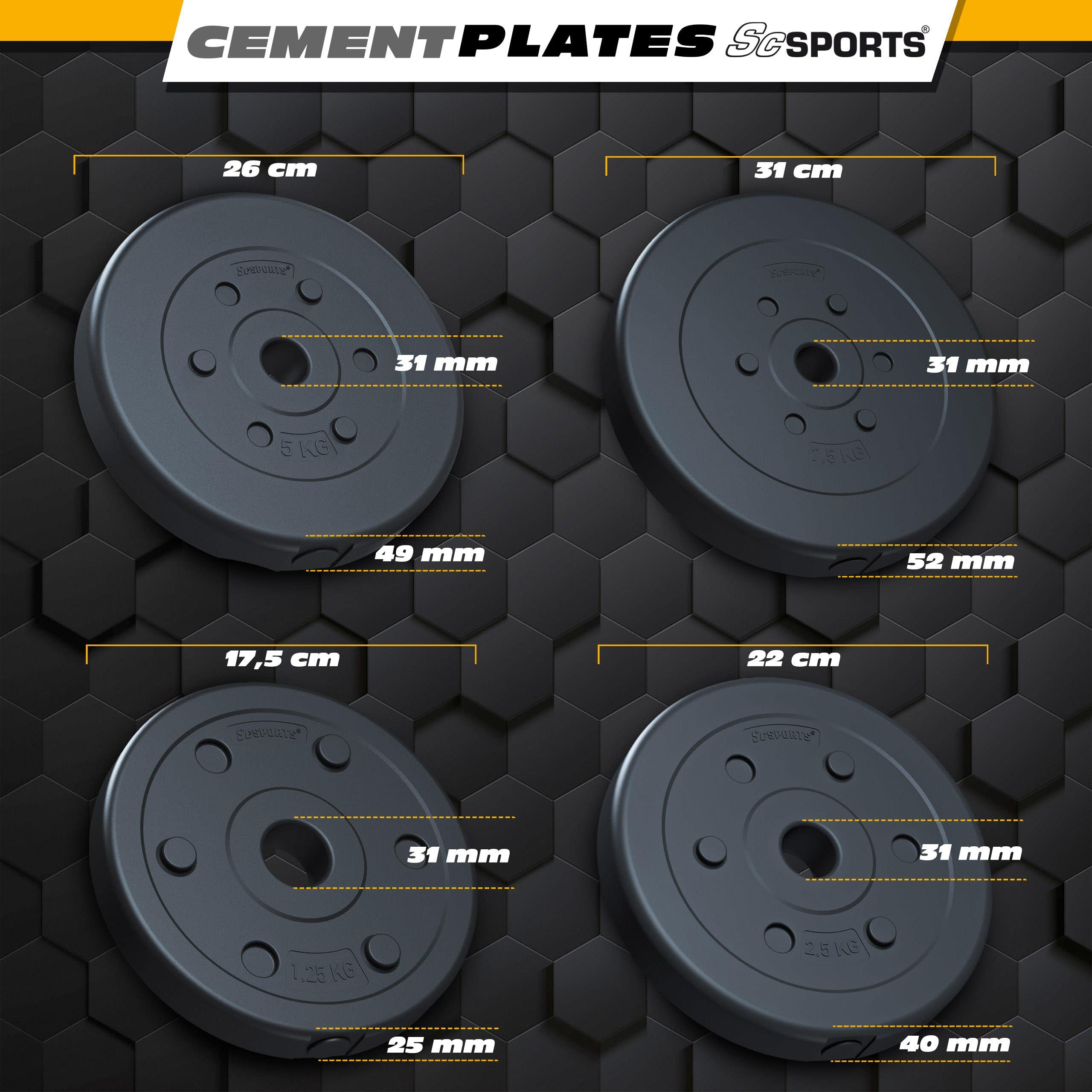 Matériau : acier chromé , Diamètre : 30 mm Le jeu d'haltères ScSPORTS de 30kg est un set 3 en 1 comprenant 2 barres d'haltères de 2,5kg et 12 disques de 2,5kg et 1,25kg en acier chromé noir avec une poignée antidérapante de 31mm Surface de chargement du poids (par côté) : 20 cm, Poids : 2,4 kg 1 x Barre d'haltères en deux parties , 2 x Fermetures à ressort Zone de préhension à moletage croisé : 15,5 cm, Poids : 2,5 kg, Charge max : 40 kg, Diamètre : 30/31 mm Remarque : La décoration montrée sur les photos n'est pas incluse. Étendue de livraison: 1 x Jeu d'haltères (Plastic Langhantel Set - Parent) - options du jeu : Ensemble 1 (10002477) : 20 kg (2 x 1,25 kg / 2 x 2,5 kg / 2 x 5 kg) Ensemble 4 (10002331) : 30 kg (2 x 2,5 kg / 2 x 5 kg / 2 x 7,5 kg) Remarque : La livraison de nos produits dans les îles n'est pas possible. Avec un poids total de 30 kg, cet ensemble d'haltères réglable contient tout ce dont vous avez besoin pour développer votre force, tonifier vos muscles et atteindre vos objectifs de remise en forme ⭐⭐⭐⭐⭐ SÛR : Grâce aux clips à collier à ressort et aux surfaces de préhension à rainures croisées, cet ensemble de barres et de disques d'haltérophilie garantit un entraînement sûr et confortable 1 x Barre d'haltères de 120 cm , 2 x Verrous à ressort Différentes options d'ensembles : 17., 5 kg / 20 kg / 27., 5 kg / 30 kg 1 x Barre d'haltères en trois parties de 140 cm , 2 x Verrous à ressort 5 kg : Diamètre : 26 cm, Epaisseur : 4,9 cm 4,9 cm 2,5 kg : Diamètre : 22 cm, Epaisseur : 4 cm Diamètre du trou : 30/31 mm Revêtement : plusieurs couches de plastique, Couleurs : Barre : argent En outre, deux verrous à ressort garantissent un entraînement d'haltérophilie en toute sécurité. ⭐⭐⭐⭐⭐ DURABLE : Les plaques de poids de notre ensemble d'haltères sont constituées d'un mélange de ciment compacté et d'un revêtement en plastique durable avec marquage en relief des kilogrammes Surface de chargement des poids (par côté) : 21 cm Ensemble 2 (10002211) : 20 kg (4 x 2,5 kg / 2 x 5 kg) Surface de préhension (par côté) : 18 cm Jeu d'haltères - SCSPORTS - 30kg - Barres et disques en acier chromé Capacité de charge max : 40 kg Longueur de la tige centrale : 98 cm Informations techniques: Barre d'haltères en 2 parties : Longueur : 120 cm Un équipement de base pour la gymnastique à domicile Remarque : Les couleurs peuvent varier légèrement par rapport aux images. Plaques de poids : 1,25 kg Diamètre : 17,5 cm, Épaisseur : 2,5 cm Une barre d'haltère standard est incluse dans la livraison, complétant ainsi votre set d'haltérophilie. Ensemble 3 (10002330) : 30 kg (2 x 10 kg / 2 x 5 kg) 7,5 kg : Diamètre Diamètre : 31 cm, Epaisseur : 5,2 cm Matériau : Barre : acier, chromé ScSPORTS® Jeu d'Haltères - Disques de Poids Plastifiés, 4 Barres, 30/31 mm, Noir - Set d'Haltères Réglables, Entraînement, Lot de Poids pour Musculation (60 kg (2 x 10/7,5/5 + 4 x 2,5/1,25)) : ScSPORTS Ensemble 5 (10002478) : 30 kg (2 x 1,25 / 2 x 2,5 / 4 x 5 kg)