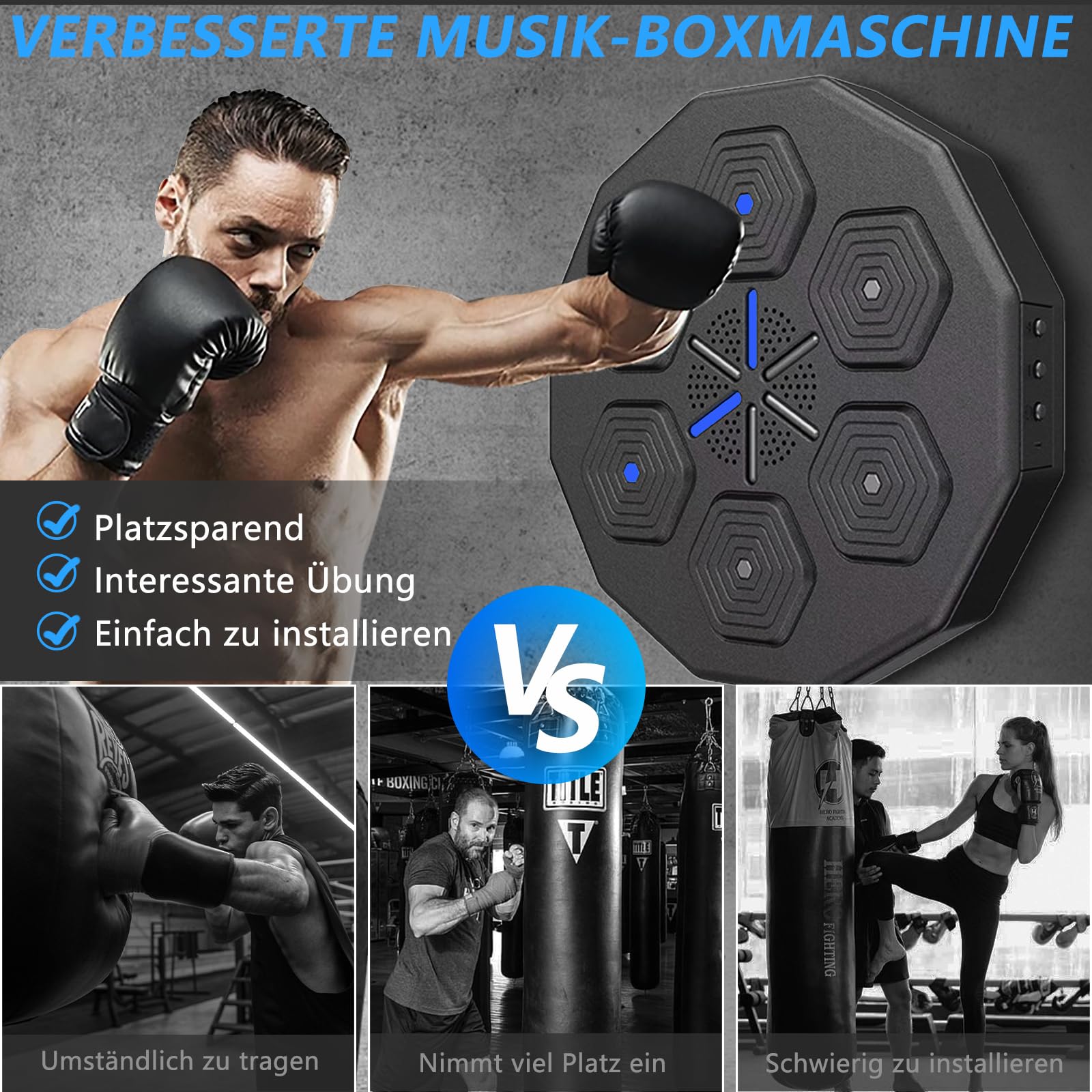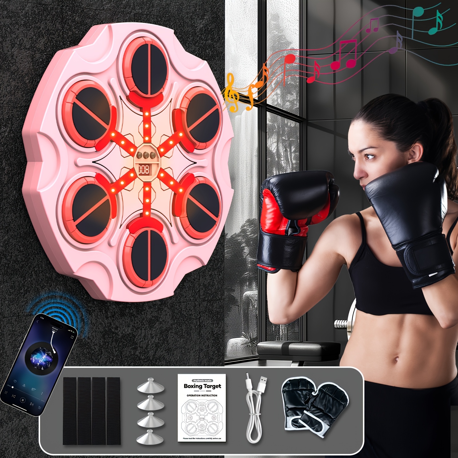 【Amusez-vous】 : en vous connectant sans effort à votre appareil intelligent, notre machine de boxe musicale introduit une nouvelle touche à vos entraînements. Ressentez la force de chaque coup de poing lorsque vous atteignez la cible en synchronisation avec des morceaux optimistes Entraîneur de boxe intelligent haut de gamme avec retour LED, 8 modes, fixation murale et synchronisation Bluetooth. Description : Machine de boxe musicale intelligente avec gants, fixation murale Bluetooth, équipement d'entraînement ciblé, mode vitesse réglable, lumière LED pour enfants et adultes Design convivial pour un exercice amusant : cette cible de frappe musicale murale offre une façon amusante de faire de l'exercice. Sa taille compacte et son design mural le rendent idéal pour les maisons ou les gymnases, offrant une solution pratique et peu encombrante pour rester actif et divertir, Affichage visuel des scores et musique Bluetooth pour une expérience améliorée : l... Jouez des chansons depuis votre téléphone ou votre tablette pour briser la monotonie du fitness traditionnel et vivre une expérience de boxe agréable Jeu Fitness Interactif Machine De Boxe Musicale Murale - LED Rechargeable - Entraînement Main/Œil - Enfants/Adultes Boxe Murale LED 【Améliore les résultats de l'exercice】 : Doté de plusieurs niveaux de difficulté, la machine de boxe musicale vous permet de profiter de votre entraînement tout en atteignant différents niveaux de défi Sa conception portable vous permet de faire de l'exercice à tout moment et en tout lieu sans être limité par le temps ou l'espace. Jeu Boxe Mural Machine De Boxe Musicale Intelligente, Cible Murale, équipement D' Entraînement Avec Sac De Frappe à Modes Multiples Pour Enfants/Adultes/ Entraînement à Domicile, Machine De (Couleur Machine De Boxe Enfant Cet équipement de fitness allie divertissement et fitness, offrant une expérience d'exercice de haute qualité pour toute la famille Cette machine de boxe musicale peut brûler tout votre corps. Taille du produit: environ 32,5x36x4,4 cm/12,8x14,17x1,73 poucesCapacité de la batterie : 500 mAhListe des paquets :Machine de boxe musicale * 1Câble de chargement USB * 1Tableau collant * 1