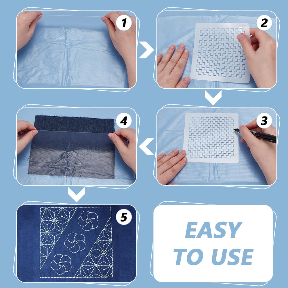 Kit de broderie Sashiko sur tablier - Sew Easy | Les Ciseaux Magiques Le tissu denim en polyester mesure environ 155mm (6., 1 pouces) de large, 202mm (7., 95 pouces) de long, et 0., 7mm (0., 03 pouces) d'épaisseur. Broderie Japonaise Tissu Denim Pochoirs WADORN Sashiko Kit De Broderie Japonais Sashiko Pour Débutants, 45 Kit Complet 45 Pièces Créatif Kit Sashiko - Votre porte d'entrée vers la broderie japonaise Dimensions du produit:Le moule de broderie mesure 120x120mm (4., 72x4., 72 pouces). Emballage:Cet ensemble comprend du fil sashiko, aiguilles, un dé à coudre, tissu en denim, et des matériaux solubles dans l'eau, offrant une combinaison de matériaux diversifiée pour vos besoins de couture et de broderie. Kit de démarrage Sashiko:conçu pour les débutants avec du tissu denim prédécoupé (7., 95x6., 1), 8 m de fil de coton sashiko, et aiguilles de 46mm , ce kit comprend des pochoirs de broderie hydrosolubles pour des transferts de motifs faciles et un dé à coudre renforcé pour protéger les doigts pendant les projets de couture ou de réparation à la main Emballage : cet ensemble comprend du fil sashiko, des aiguilles, un dé à coudre, un tissu denim et des matériaux solubles dans l'eau, offrant une combinaison de matériaux variée pour tous vos besoins de couture et de broderie Broderie sashiko techniques et traditions Le tissu hydrosoluble mesure environ 289x201x0., 1mm (11., 38x7., 91x0., 004 pouces). Il y a 2 couleurs disponibles. Le fil mesure 8 m (8., 75 yards) de long avec un diamètre de 1., 5mm (0., 06 pouces).