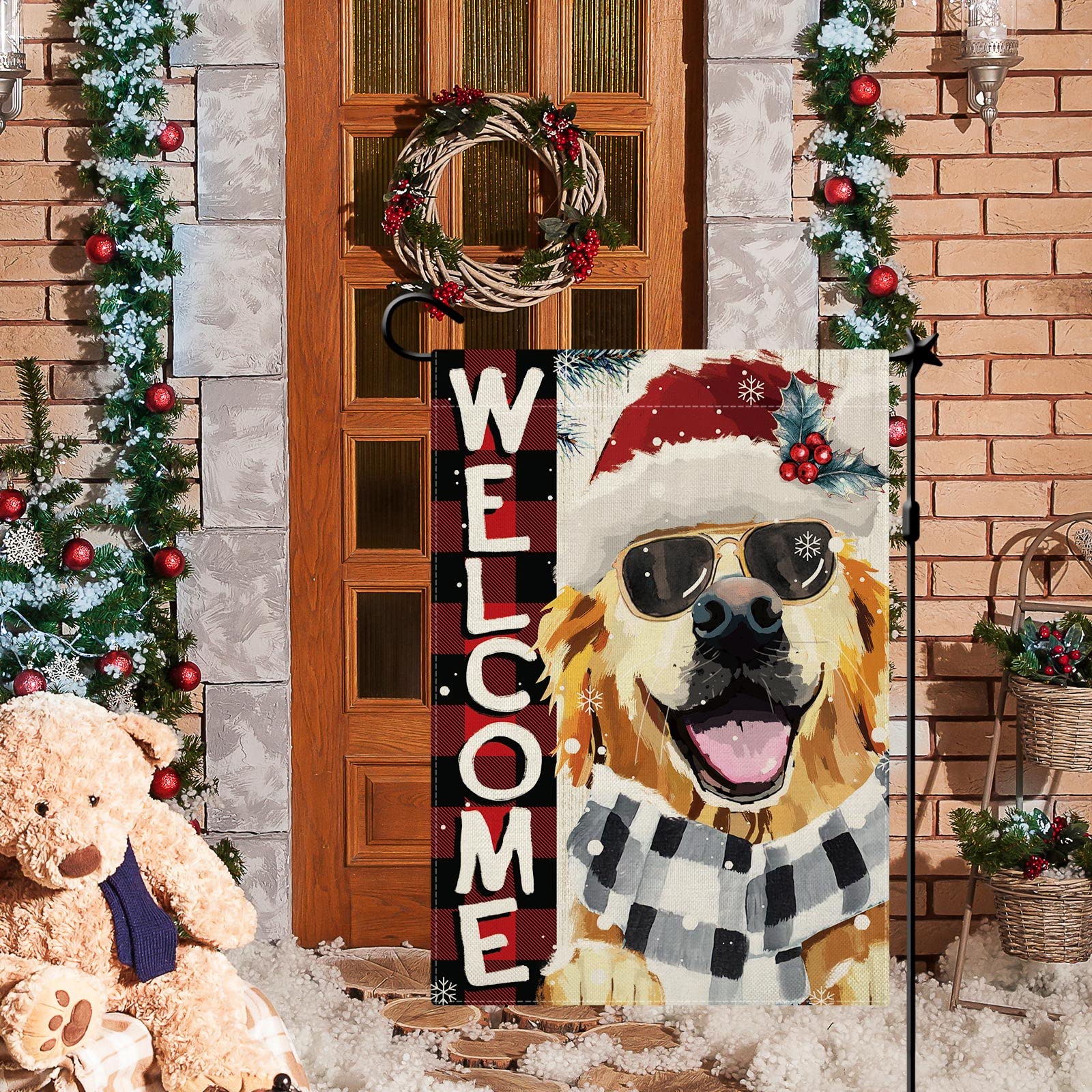 Breeze Decor Drapeau De Jardin En Polyester Patriotic Labrador Retriever Twoj2403 Drapeau De Jardin Landseer Terre-Neuve Recto-verso - Drapeau De Jardin D'hiver - Décoration De Large application : vous pouvez accrocher le drapeau de jardin de Noël Golden Retriever sur le support de drapeau et ensuite le placer sur votre jardin, patio, cour, pelouse, porche, ajoutant une atmosphère de Noël animée Double face : les motifs sont imprimés des deux côtés du drapeau de cour, qui peuvent facilement être vus des deux côtés. Décoration d'intérieur : utilisez ce mini drapeau exquis pour accueillir vos invités dans votre maison et ajouter de la couleur et de la vitalité à votre maison chaleureuse