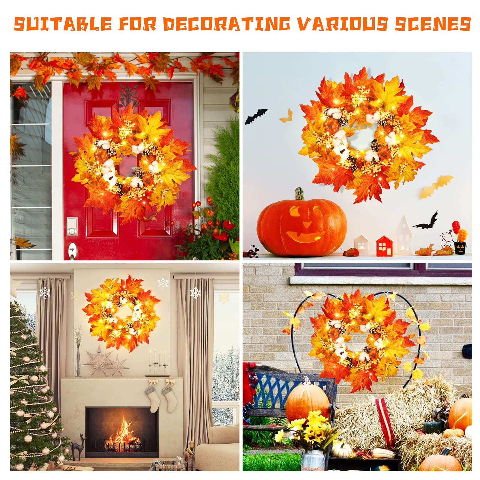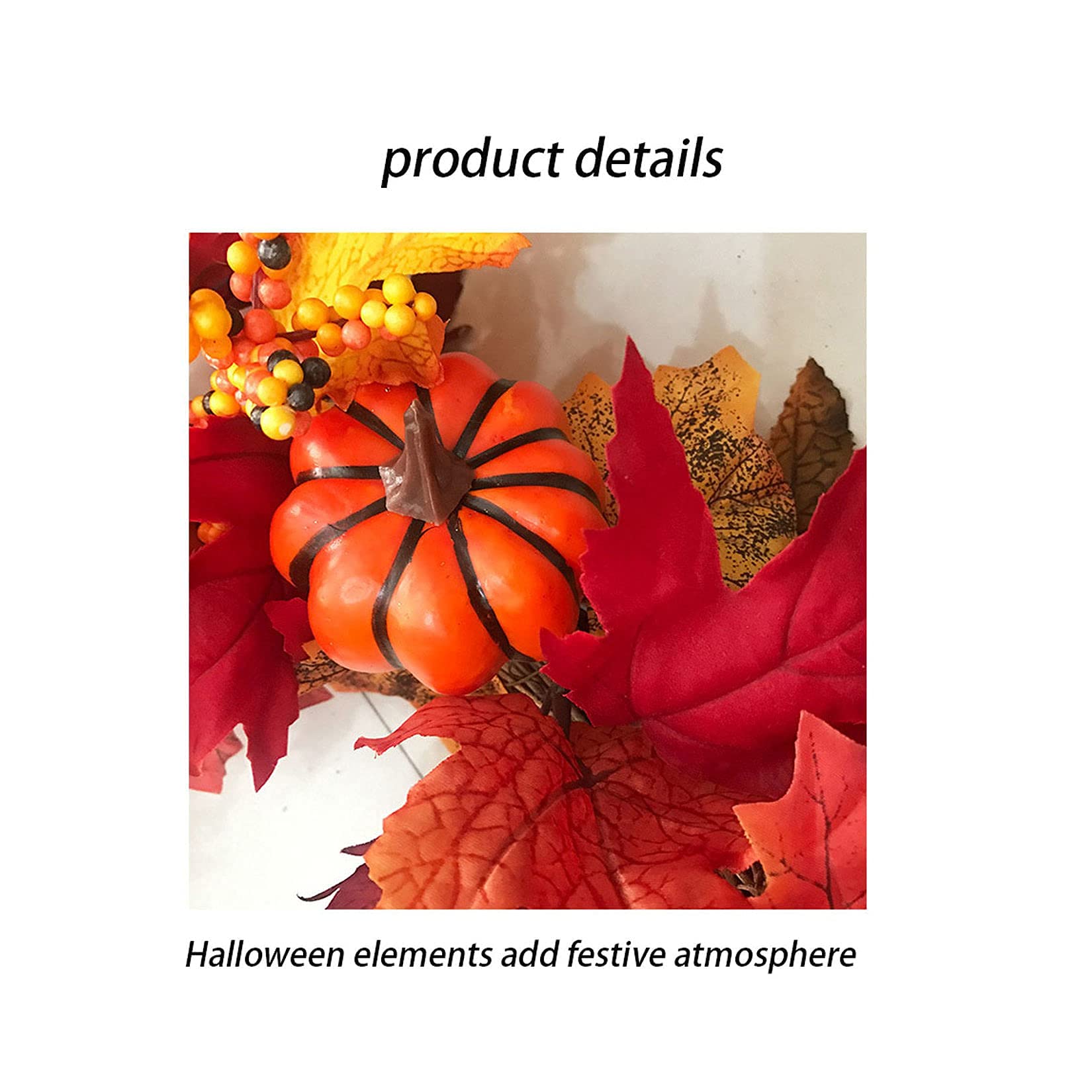 Caractéristiques 1., Matériel: tige en fil de fer avec le papier enveloppé, citrouilles en mousse, feuilles d'érable en soie, tournesol et baies. Couronnes d'automne à LED pour porte d'entrée, couronne d'automne artificielle, décor de Thanksgiving, guirlande de noël, Imperméable Déposer un avis Poser la 1ère question - 49.98 Haute qualité et respectueux de l'environnement., 2., Il a de nombreuses branches, vous pouvez également étirer chaque branche pour créer votre propre taille et forme., 3., Illuminez votre maison avec ce butin d'automne magnifiquement arrangé et décoré. spécification Matériau : Plastique, Mousse, PE, Acier Couleur : Multicolore Taille : 50 cm/20 pouces Poids : 100 g, 94 g Contenu de l'emballage : 1 couronne de porte Swag Décoration parfaite pour les fêtes de fin d'année : ce tournesol d'automne le rend idéal pour la décoration en automne, Thanksgiving, Noël et les saisons de récolte. Guirlande Porte Récolte WEIGE Couronne D'automne Couronne De Thanksgiving, Guirlande De Récolte D'automne Décorations D'halloween Avec Des Feuilles D'érable Artificielles Guirlande Automne La décoration parfaite à suspendre sur n'importe quel mur ou porte. Matériaux de haute qualité : les couronnes artificielles de porte d'automne sont fabriquées en plastique et mousse, PE et plastique. Entretien facile : la couronne de porte ne tombe pas facilement, ce qui garantit une utilisation à long terme. C'est aussi un bon cadeau pour votre famille et vos amis., 4., Décorations idéales pour l'automne : ce magnifique décor d'automne peut être utilisé dans de nombreux styles pour décorer votre porte ou votre cheminée. keebgyy Guirlande de fleurs artificielles d'automne de 68,6 cm avec Ces mini citrouilles et feuilles sont des décors idéaux pour les jours d'Halloween et de Thanksgiving. Couronne de mariage, guirlande artificielle accessoire couronne...