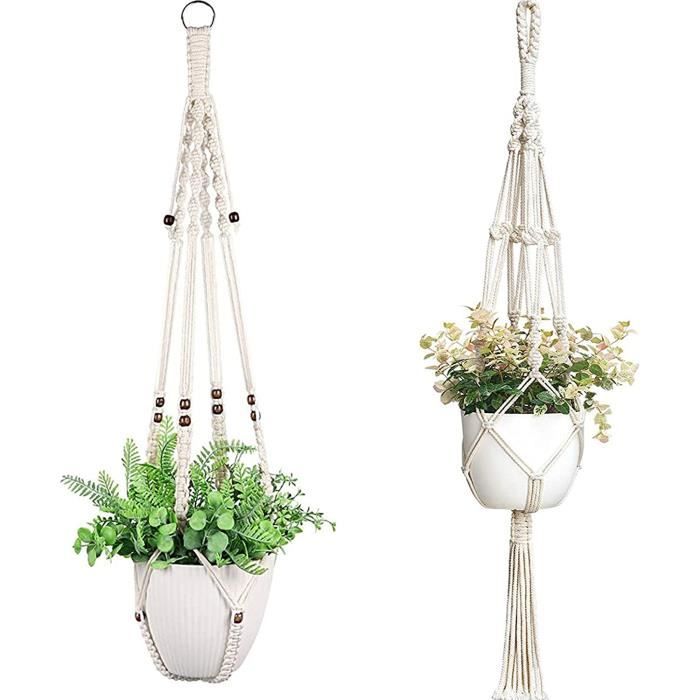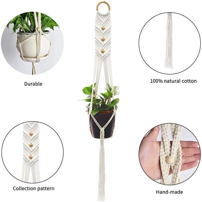Suspension pot de fleur macramé | Décoration Macramé Suspension Plante Exterieur Lewondr 3Pack Suspension Plante Macramé Pot Suspendu Porte Plante Corde De Coton Tissée, Support Pot De Fleur Pour Jardin Décor Intérieur Extérieur – Beige, Set A Cadre Vegetal Installation et utilisation faciles : instructions d'installation détaillées, du pot en filet à la fixation par crochet, utilisation simple, aucun outil professionnel requis, la suspension de plantes vertes est facile à réaliser, gain de temps et d'efforts, créant rapidement une ambiance vivante dans la maison. Aucun accessoire supplémentaire n'est nécessaire. Sa large plage de diamètres et sa polyvalence permettent de suspendre harmonieusement différents styles de pots. Ces maniques robustes sont prêtes à être accrochées près de votre baie vitrée, tringle à rideau, coin de votre chambre, porte de terrasse ou sur votre porche. Idéal pour une utilisation en intérieur et en extérieur Matériau fiable, stable et durable : le filet est tissé avec une corde en coton naturel, flexible, résistante et difficile à casser. On adore ajouter des plantes à nos intérieurs, ça se voit ! Dans notre appartement, chaque pièce regorge de petites plantes, des cactus et succulentes aux plantes suspendues et aux arbres d'intérieur, qui purifient l'air et apportent une vraie vitalité. Ce porte-plantes en macramé est donc pile dans la tendance ! C'est une façon originale de mettre en valeur vos plantes d'intérieur... Les crochets métalliques et les crochets en S sont robustes et inoxydables, garantissant une suspension sûre, accompagnant la croissance des plantes vertes pendant longtemps et embellissant la décoration de votre maison. Largement adaptable et compatible : le filet s'adapte à une grande variété de pots de fleurs, qu'ils soient en céramique, en argile ou tressés.