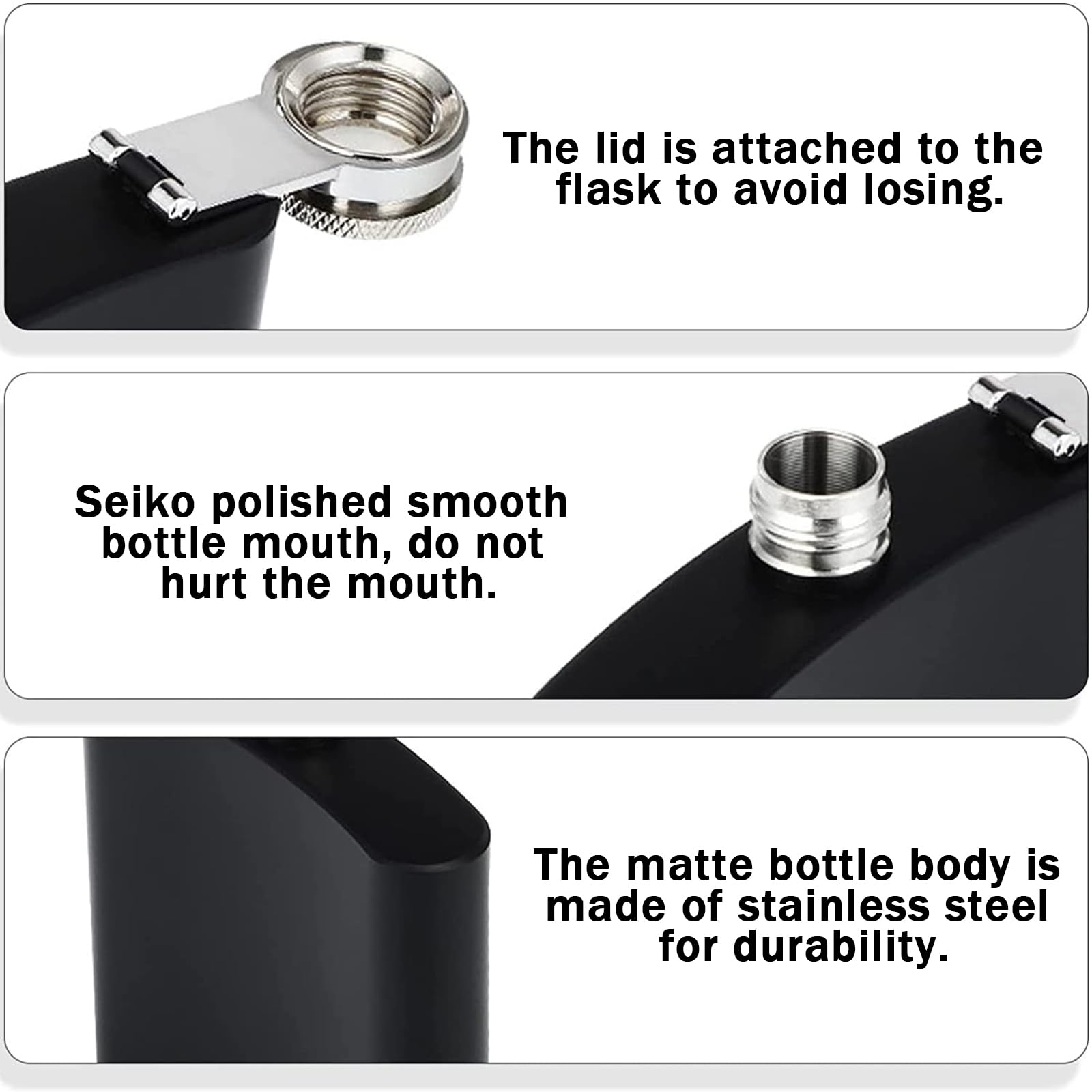 Bouteille Isotherme En Acier Inoxydable De 1,5 L - Isolation Sous Vide Flasque Portable Flasque Whisky Acier Inoxydable 8oz (227ml) - Étanche, Avec Entonnoir | Parfait Randonnée, Cadeau Accessoire Randonnée Alcool Design anti-fuite : chaque flasque à whisky rose blush et noir pour homme avec un couvercle épais en acier inoxydable, sous pression, soudée au laser et contrôle de qualité. Le bouchon se ferme hermétiquement pour s'assurer qu'aucune vodka, whisky ou autre boisson préférée ne fuit et ne soit gaspillée Durabilité améliorée : fabriquée en acier inoxydable brossé de qualité supérieure, cette flasque d'alcool dispose d'un design distinct qui vous permet de vous démarquer où que vous alliez