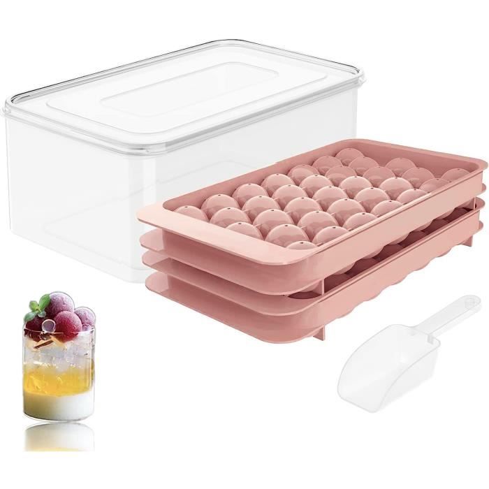 Ne vous limitez pas aux boissons et aux aliments pour bébés, vous pouvez également remplir le bac de fruits, de yaourts ou de chocolats pour profiter de vos saveurs préférées faites maison. Bac À Glaçons De Cuisine En Silicone Pour Whisky, Bac À Glaçons Lot de 3 bacs à glaçons en silicone avec couvercle, 15 glaçons par plateau pour congélateur, eau, nourriture pour bébé, whisky, cocktail et boisson, démoulage facile, sans BPA (rose, bleu, vert La conception empilable facilite le rangement de plusieurs bacs, optimisant ainsi l'espace dans votre réfrigérateur. Design élégant - Notre bac à glaçons circulaire avec couvercle bénéficie d'un design unique qui permet d'obtenir à chaque fois des boules de glace parfaitement rondes, ajoutant une touche d'élégance à vos boissons. Bac À Glaçons Avec Couvercle, 33 Moules À Glaçons Sphériques Pour... Il suffit de sortir le bac du congélateur, d'enlever le couvercle et de tourner doucement le bac pour démouler les glaçons sans effort. Lot de 3 bacs à glaçons - Découvrez notre lot de 3 bacs à glaçons avec couvercle (chacun mesurant 23,1 x 14 x 1,7 cm) permettant de produire 104 glaçons par bac, soit un total de 312 glaçons, une pince à glaçons (12,5 cm) et une spatule (6 cm) pour transférer en toute sécurité les glaçons du seau à glace vers un verre ou une boisson, ainsi qu'un bac de rangement pour une meilleure organisation. Machine à Glaçons Congélateur Démoulage Facile Horuili Bacs à Glaçons Rondes, Moule à Glaçons, Réutilisable Bac à Glaçons Avec Couvercle, Avec 33 Moules à Glaçons Pour Boissons Froides, Whisky, Cocktails (Rose Moule Glacon Rond