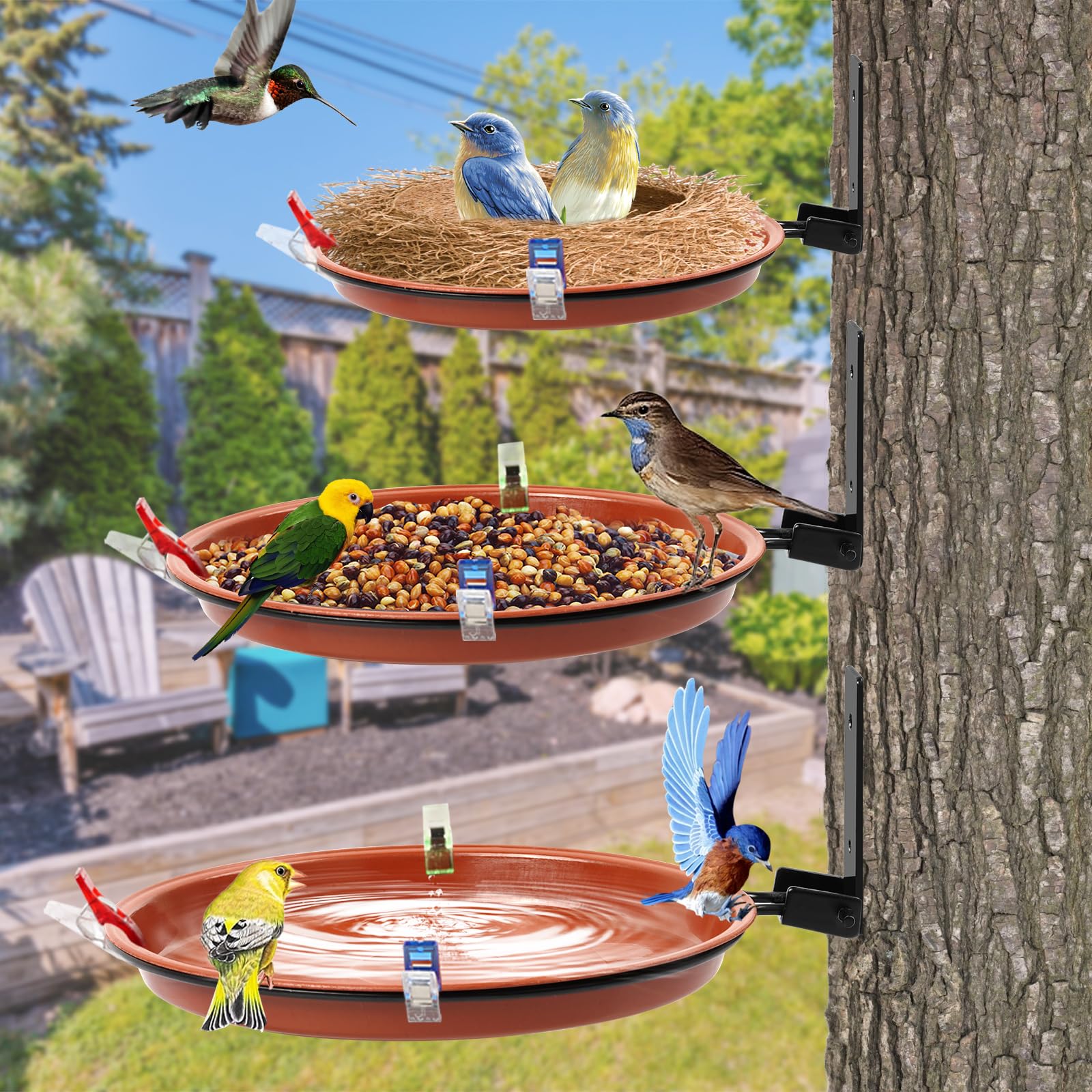 Facile à installer : la base est livrée avec des vis et des vis d'expansion, le bain d'oiseaux d'extérieur a une forte capacité de charge et peut être bien fixé à un tronc d'arbre, un mur ou un balcon. Mangeoires oiseaux bain d'oiseau lot de 2 jardin extérieur Description du produit Liste des pièces : 3 plateaux d'alimentation pour oiseaux. En outre, le cadre en fer pour palette peut être plié à 90 degrés vers le haut et vers le bas et se replie sur le tronc d'arbre lorsqu'il n'est pas utilisé pour économiser de l'espace Convient aux cardinaux, mésanges, pinsons, grives, moineaux, étourneaux, etc. Astuce : les charges limitées ne conviennent pas aux écureuils. Avertissement De Sûreté Ne convient pas aux écureuils. Expédié Par - Mangeoires Pour Oiseaux Sauvages Attirez les oiseaux de toutes tailles et une variété de beaux oiseaux, y compris les cardinaux, les mésanges et les pinsons. Dimensions : 21 x 4,8 cm Remarques : 1., La charge limitée ne convient pas aux écureuils., 2., Il peut y avoir de légères différences entre l'image et la couleur réelle du produit. Taille parfaite : grand + moyen + petit diamètre (19 cm + 17 cm + 15 cm), le plateau de semis rond crée un espace de repas complet qui permet à plusieurs oiseaux de manger sous tous les angles. COMBO BAIN ET mangeoire pour oiseaux suspendus premium parfait pour les... Mangeoires Pour Oiseaux Sauvages Abreuvoir Oiseaux, Mangeoire Oiseaux Exterieur, Abreuvoir Pour Oiseaux Balcon, Mangeoire Oiseaux Exterieur Sur Pied, Bains Pour Oiseaux Sauvages, Decoration Pour Jardin Balcon Bain Oiseau Ils ne sont pas sujets au vieillissement, à la déformation ou à la fissuration, mais sont extrêmement durables et ne se cassent pas dans toutes les conditions météorologiques.