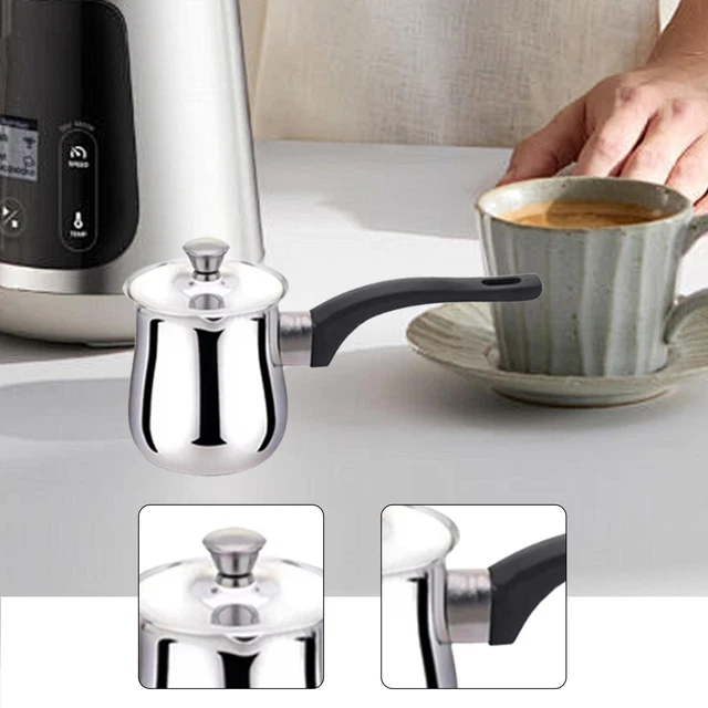Cafetière 304 Bec Verseur 900ml Chocolat Beurre Lait Gaz Cafetière En Acier Inoxydable Avec Thermomètre, Capacité De 800 Ml Pot à Fondre Chocolat Beurre Matériau : fabriquée en acier inoxydable 304 robuste, cette casserole garantit une durabilité et une résistance à la rouille et est capable de supporter des températures de cuisson élevées sans usure. Bec verseur flexible avec filtre pour jerrycan métal Avec son design monobloc en acier inoxydable et son bec fin long, cette cafetière vous permet de maîtriser l’infusion goutte à goutte pour une extraction optimale des arômes. Idéale pour un usage domestique, elle se distingue par son style rétro et son confort d’utilisation La poignée renforcée est enveloppée pour plus de confort et de propreté, sans vis internes qui se corrodent au fil du temps. Pas de vis à l'intérieur pour vous inquiéter. Machine à café de presse 600 ml, cafetière de presse domestique en acier inoxydable 304 de Utilisations multifonctionnelles : cette cafetière en acier inoxydable sert également de chauffe-lait et de pot à fondre le beurre, pour créer de délicieuses friandises ou sauces au chocolat, améliorant vos compétences culinaires sans effort. Cependant, il ne convient pas aux cuisinières à induction, donc assurez-vous de la compatibilité avant utilisation. *Fonctionnalité polyvalente : plus qu'une simple cafetière turque, cette casserole sert de chauffe-lait et de beurre, parfaite pour faire fondre du chocolat, préparer du caramel maison ou chauffer des sauces. * Design intelligent : doté d'un bec verseur pratique, ce pot empêche les fuites lors du versement. C'est un choix pour diverses tâches culinaires. Matériau : acier inoxydable 304., Dimensions : voir photo., Couleur : argenté. * Capacité généreuse : disponible en tailles de 350/600/900 ml, cette mini cafetière peut accueillir 2 à 6 tasses, ce qui la rend adaptée pour les petits rassemblements ou un usage personnel, garantit que tout le monde peut profiter de ses boissons préférées. Ses propriétés résistantes à la rouille et sa capacité à résister à des températures élevées garantissent la longévité et l'entretien facile.