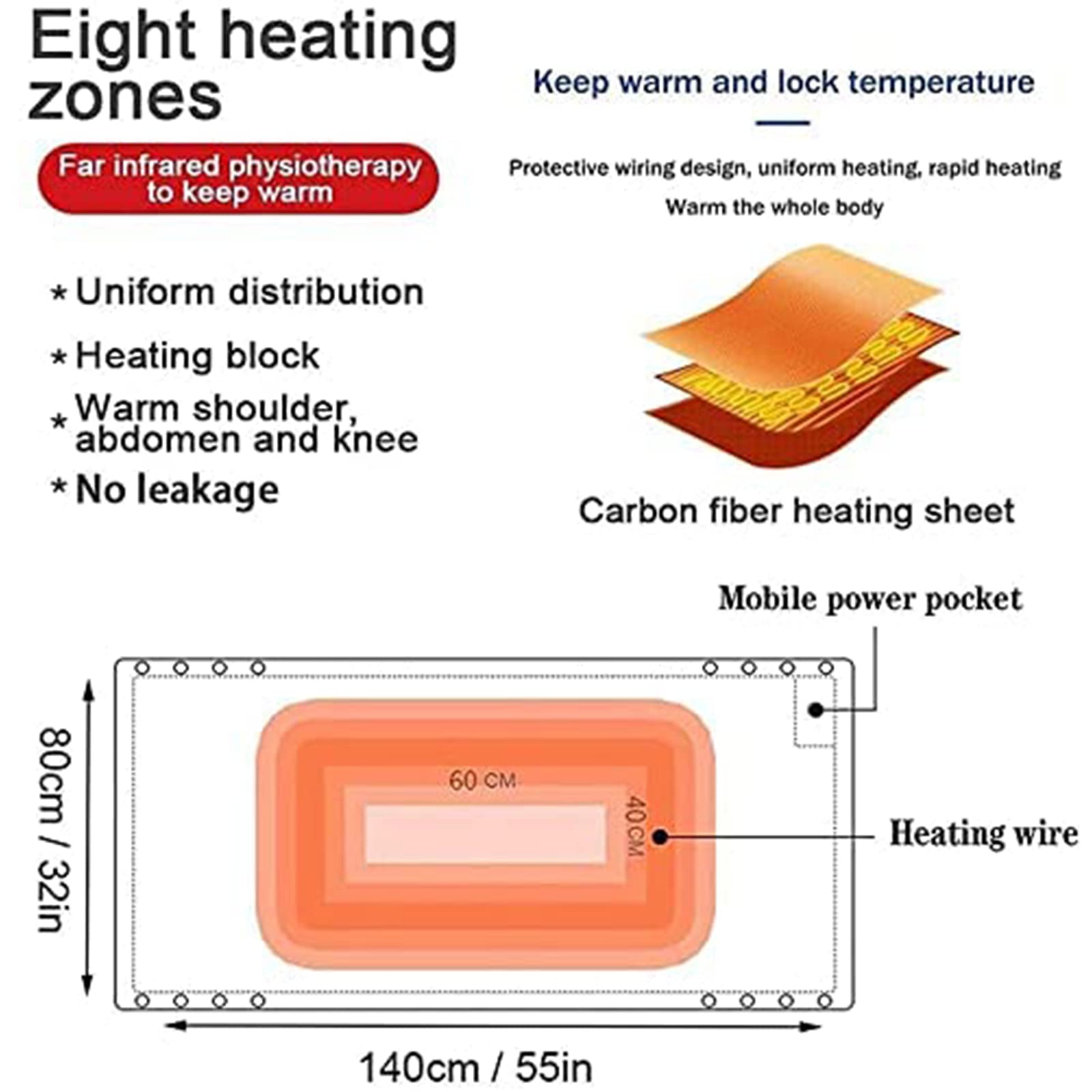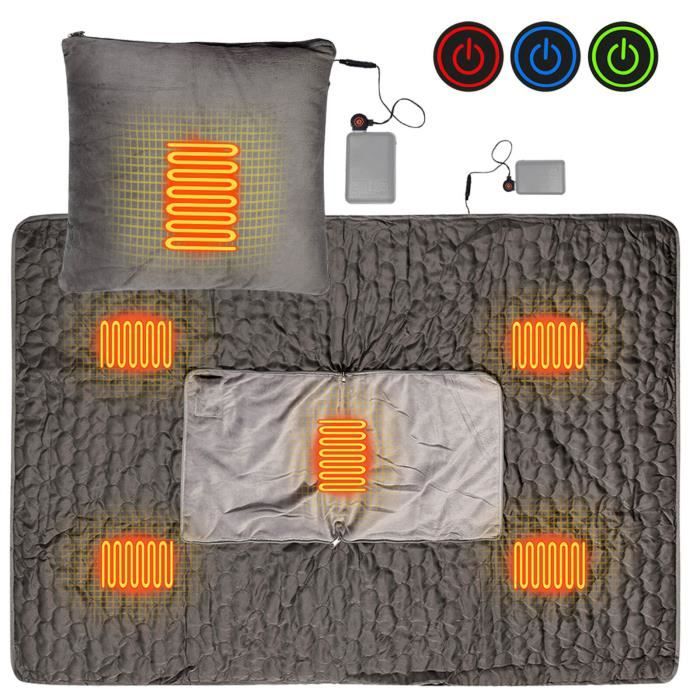 Assurance qualité et sécurité : assurance de sécurité, contrôle de la température, protection contre la surchauffe et protection contre les courts-circuits, vous permettant de vous reposer facilement. Chauffage rapide : 3 types de température peuvent être ajustés (45 ℃ à 65 ℃), un seul bouton pour changer. Chauffage rapide et arrêt automatique de sécurité : le châle chauffant dispose d'applications de sécurité telles que la minuterie d'arrêt automatique de deux heures ainsi que trois réglages de chaleur pour mieux s'adapter à vos besoins. Vous pouvez vous promener librement avec la couverture, vous gardant au chaud de tous les côtés (batterie externe non incluse) Mode d'alimentation : prise USB., Tension : 5 V., Fièvre : 8 pièces. Lavable en machine : la couverture chauffante électrique est lavable en machine et passe au sèche-linge une fois le contrôleur détachable. Retirez simplement le contrôleur de chauffage et lavez la couverture en machine, préservant ainsi l'hygiène et la douceur pendant longtemps Châle Chauffant Électrique Usb,3 Réglages De Chaleur,Couverture Chauffante Usb Camping Lorsque vous êtes en déplacement, enroulez le câble et mettez-le dans la poche avec la banque d'alimentation., (sans batterie externe) Largement utilisé : vous garde au chaud et confortable pendant les nuits froides pendant que vous faites du camping, profitez d'un concert en plein air, vous détendez à la maison, lisez un livre, regardez la télévision, sur l'ordinateur, lors d'événements sportifs, après un jeu, emportez-le partout où vous le souhaitez. Facile à utiliser et lavable : le design à bouton-poussoir permet à la couverture d'être chauffée en appuyant sur un bouton, éliminant le besoin d'une télécommande encombrante, la fermeture éclair lui permet d'être utilisée comme un vêtement extérieur chauffant. En outre, il est facile à transporter et peut être utilisé au bureau, dans la voiture ou même en camping. Plaid Chauffant Sans Fil Avec Batterie Couverture Chauffante USB, 150 X 85cm,Couverture Électrique Sans Fil, Couvertures Plaid Chauffant Avec 3 Niveaux De Chauffage, Portable,Lavable En Machine Plaid Chauffant Usb Découvrez une chaleur réconfortante et ajustable avec cette couverture chauffante USB, parfaite pour vous garder au chaud à la maison, au bureau ou en déplacement Dimensions de l'emballage : 30 x 40 x 5 cm., Poids : 0,72 kg. L'élément chauffant interne est fabriqué en fibre composite de haute qualité, qui peut être chauffée rapidement et est sûre et stable. Couverture électrique USB sûre : basée sur la basse tension (alimentation USB), il n'y a aucune possibilité de choc électrique, c'est plus sûr que l'alimentation CA. Couverture chauffante électrique USB – Châle chauffant USB 150 x 85 cm, couverture chauffante sans fil rechargeable, couverture chauffante en flanelle avec chaleur rapide et 3 réglages de chaleur, chauffage doux et confortable alimenté par USB, lavable en machine (batterie externe non incluse) Tissu doux : tissu polaire corail double face, chaud, confortable et super doux. Occasion appropriée : parfait pour le camping, les voyages, la marche en plein air, le bureau, la maison, etc. Il est recommandé de les laver à la main et de les sécher naturellement après (*Veuillez vous assurer de retirer l'alimentation mobile avant le lavage)