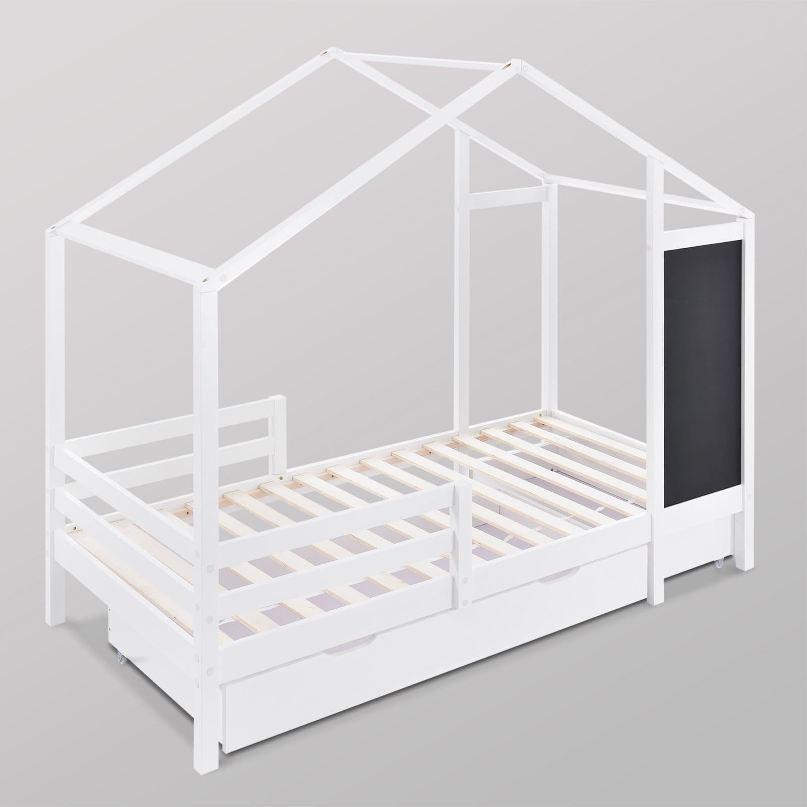 Lit maison Sweiko 90x200 cm, lit d'enfant multifonctionnel en bois pour garçons et filles, avec protection antichute et cadre de lit plat en nouilles, gris (sans matelas La belle construction du toit élargit vos possibilités de concevoir la chambre de votre enfant et d'ajouter des éléments décoratifs. Lit Maison Enfant Sweiko Lit D'enfant Lit De Maison 90 X 200 Cm, Lit En Bois Avec Tableau Sommier Lattes Lit Enfant Conçu pour les petits : avec son toit et sa clôture, ce lit unique crée un espace amusant et charmant qui sert non seulement de zone de couchage confortable, mais aussi de place pour que vos enfants puissent jouer et s'amuser. Montage facile et rapide : le lit simple est rapide à monter, car toutes les pièces nécessaires sont incluses dans le kit. Une notice de montage claire est incluse (français non garanti) pour installer le lit moderne en quelques heures. Lit enfant avec sommier Cadre de - 90 x 200 cm - blanc - Sweiko Lit en bois 90x200 cm Lit simple pour enfant - SWEIKO - Rose+Blanc Exprimez l'imagination de vos enfants : la jolie forme de maison donne à la chambre de votre enfant une atmosphère vivante. Qualité à un prix avantageux : la construction robuste garantit une utilisation sûre et les 15 sommiers à lattes rigides offrent suffisamment de soutien pour le développement de la colonne vertébrale. Le matériau de surface est facile à nettoyer, les mères n'ont pas à s'inquiéter que les enfants dessinent des images sur le cadre du lit.