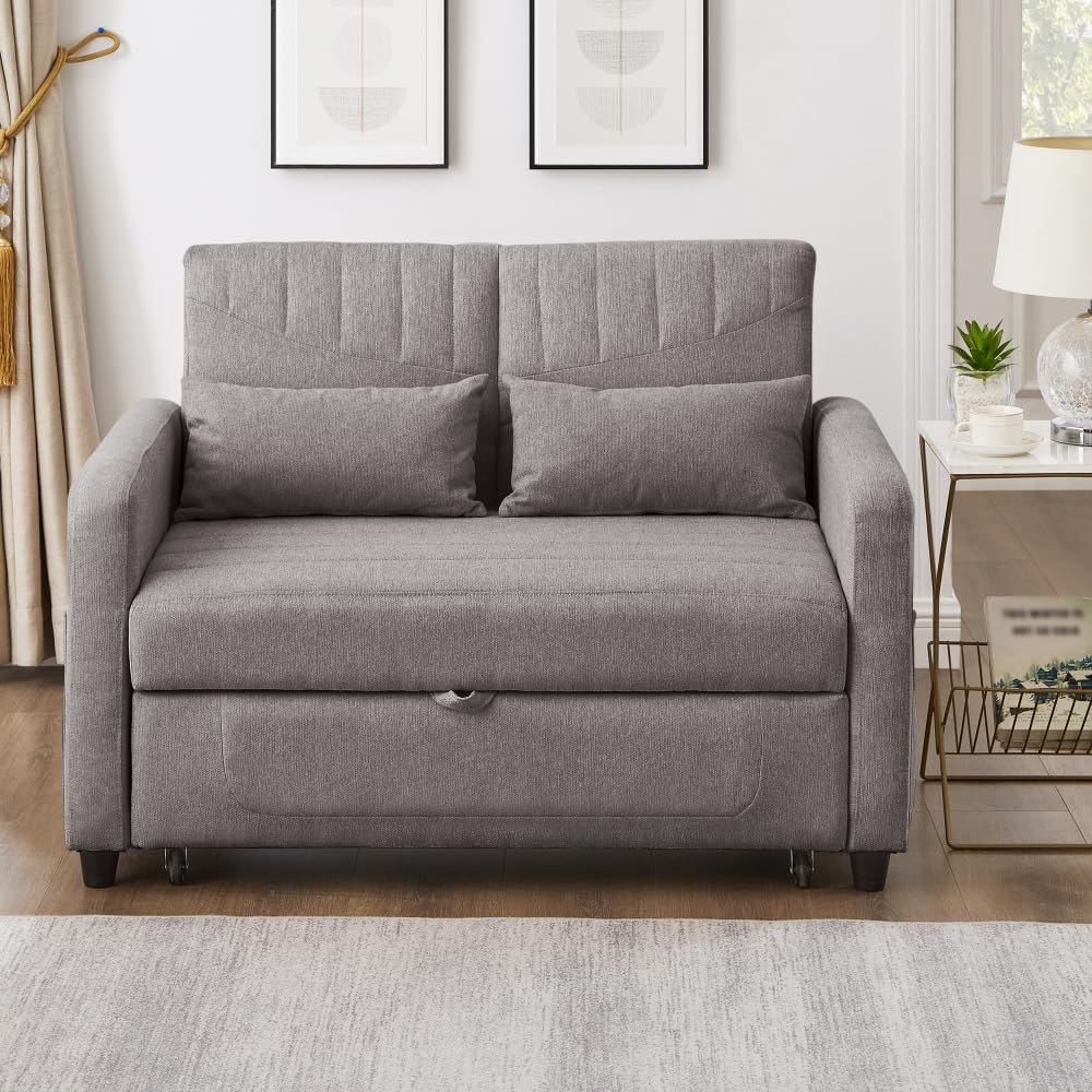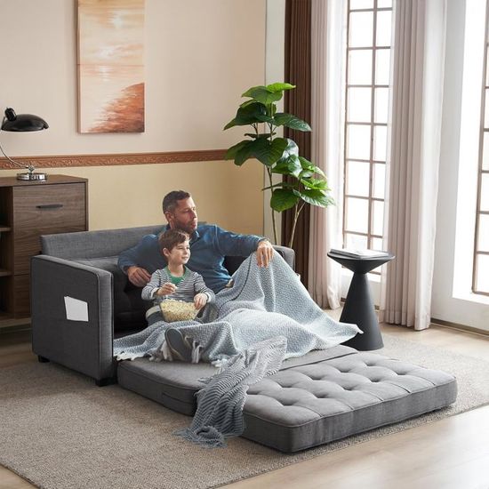 【Canapé et lit en un seul geste】 – adaptable à tous vos besoins : d'un simple geste, le canapé se transforme en lit. Il convient parfaitement au salon, au bureau, à la chambre à coucher, etc. Une notice de montage détaillée est fournie pour un montage facile. 【Mousse haute densité et résiliente】 – indéformable et confortable en permanence : Le rembourrage en mousse épaisse haute densité épouse délicatement les formes du corps, offrant un soutien uniforme et une agréable sensation de douceur et de détente, en position assise comme allongée, sans s'affaisser, même après une utilisation prolongée. Deux coussins amovibles 2 en 1 augmentent le confort d'assise et de couchage. Canapé convertible 2 places moderne fonction couchette dossier réglable 【Dossier réglable sur 5 positions】 – confort d'assise et de couchage réglable individuellement : le dossier est réglable sur cinq positions – idéal pour lire, regarder la télévision en boucle, télétravailler ou faire une sieste relaxante. Résistant aux déchirures et durable, ce matériau est idéal pour un usage quotidien. Ce canapé-lit gris polyvalent de 137 cm de long, 76,5 cm de large et 83 cm de haut est un meuble multifonctionnel qui peut servir de canapé confortable ou se transformer en lit pour les invités, idéal pour les petits appartements Canapé Convertible 2 Places Moderne Avec Fonction Couchette Et Dossier Reglable Grands Coussins De Dossier Inclus Gris Antique Bz Convertible 2 Places Matériaux et spécifications Matériau du rembourrage de l'assise : éponge Matériau de la surface : velours tricoté chaîne Matériau des pieds : PP Un assemblage est-il nécessaire ?:Oui Charge maximale : 150 kg Poids net du produit : 43,58 kg Réglages du dossier : 5 Hauteur du plan de couchage par rapport au sol : 44 cm Largeur des accoudoirs : 12 cm Dimensions de la surface de couchage : 174 x 103 cm Dimensions du coussin : 54 x 48 cm Le dossier offre 5 niveaux de réglage pour des positions optimales pour lire, se détendre ou dormir. Canapé-lit -Canape 2 places -Avec dossier inclinable réglable et grands coussins-Beige La surface est en velours tricoté chaîne de haute qualité, doux pour la peau et respirant, résistant à la traction et à l'abrasion. Confortable canapé le jour ou confortable lit d'appoint la nuit, il est idéal pour les pauses détente au salon, une chambre d'amis improvisée ou les visites d'amis. Grâce à son mécanisme coulissant, combiné à un système de roulettes métalliques et à un cordon de serrage, il se transforme d'un canapé en lit d'une simple traction. 【Coussins larges et polyvalents, amovibles et bien pensés】 - deux coussins larges et moelleux sont inclus, parfaits pour soutenir le dos sur le canapé ou comme appui-tête pour dormir.