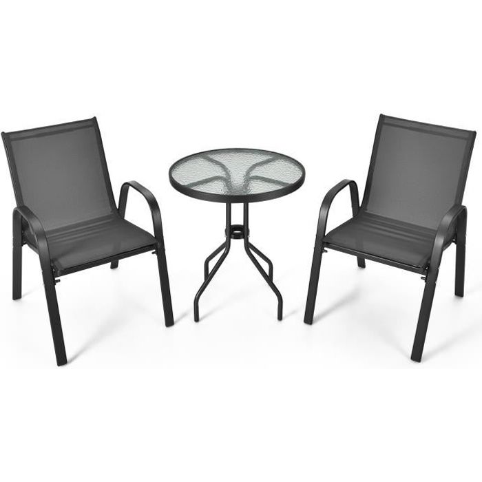 COSTWAY Salon De Jardin 4 Pièces En Osier Charge 150-300KG, Ensemble De Meubles De Patio Avec Cadre En Metal Galvanise Et Table Basse En Verre Trempe Pour Patio Balcon Terrasse Noir 83263136