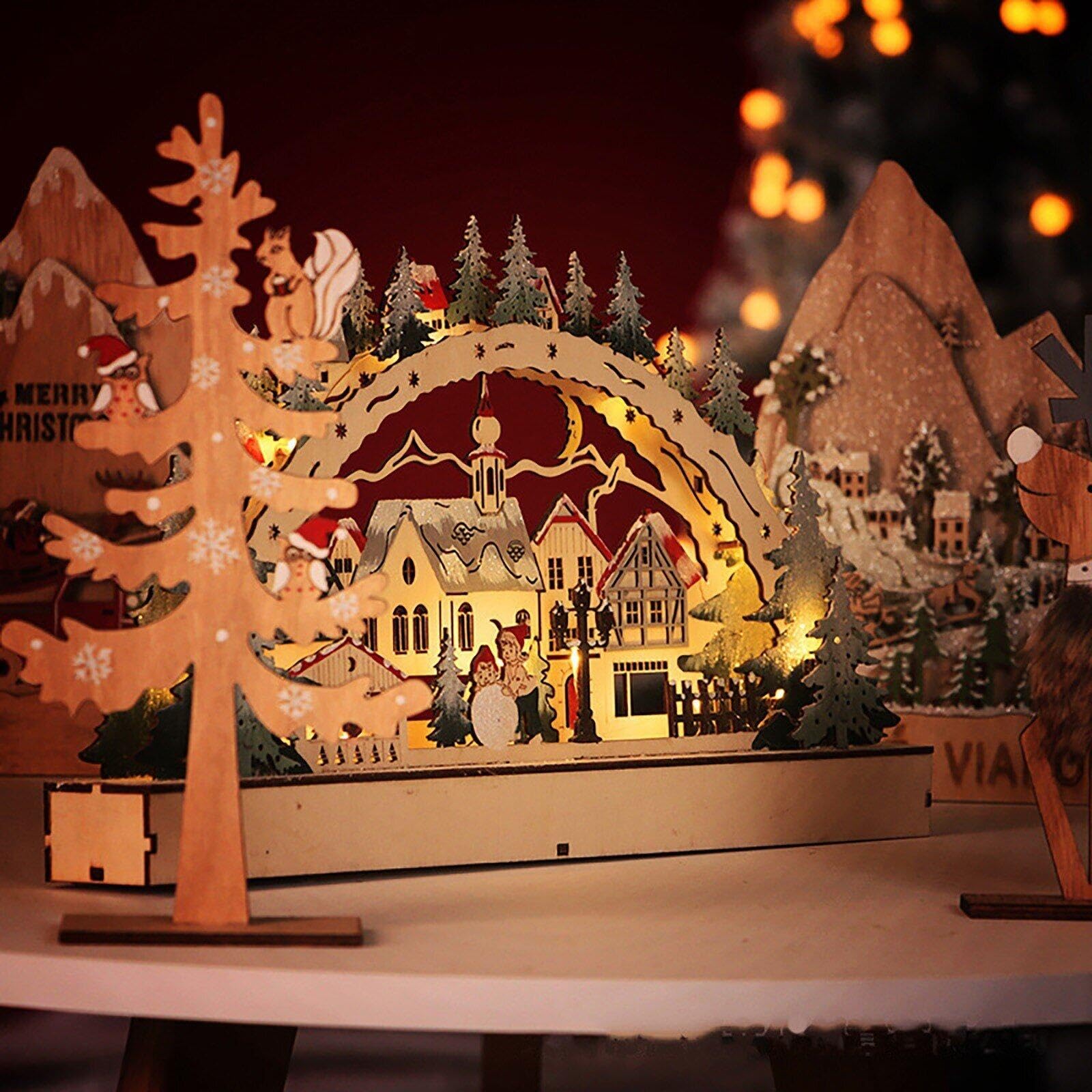 Ils sont parfaits pour la décoration esthétique de chambre, décoration de jardin, cour, Noël, et plus encore. Commandez Décorations de Noël à LED en bois – Maison de village à DEL pour salon, chambre, entrée, fenêtre parmi un grand choix de produits Cuisine et Maison sur Caractéristiques : Nom : Décoration de cabine lumineuse en bois Matériau du produit : Bois Poids du produit : environ 155 g Dimensions du produit : environ 30 x 9 x 10 cm Contenu : 3 décorations lumineuses en bois pour cabine Longue durée de vie : fabriquée à partir de bois de haute qualité, cette décoration de cabine lumineuse n'est pas facile à casser ou à déformer, assurant qu'elle peut être utilisée pendant une longue période. Un cadeau parfait pour la fête des enfants, les cadeaux de Noël et les cadeaux de déménagement car il ne nécessite aucun assemblage ou démontage Décoration Fenêtre Noël Décoration Lumineuse Joyeux Noël, Village Enneigé 3D LED Faire Soi Même Kit de cabine lumineux professionnel : soulevez l'esprit des vacances avec cette décoration de cabine lumineuse en bois. Largement utilisé : cette décoration de cabine lumineuse en bois sert de charmante décoration de bureau, de décoration de table centrale ou de décoration de salon, tout en améliorant l'esthétique de la chambre, de la cuisine et de la ferme ; elle apporte une atmosphère festive à votre jardin, cour Cadeau créatif : décorez votre espace avec cette décoration de cabine lumineuse en bois qui se vante d'une décoration intérieure exquise. Sa lumière LED chaude ajoute une touche charmante à votre Noël, transformant votre maison en un pays des merveilles festif. DÉCO LED BOIS VILLAGE NOËL FORËT OR 12X4.5X15.5CM Création de l'ambiance pour le festival : la décoration de cabine lumineuse en bois sert de toile vierge pour une expression créative. Maison de Noël LED : design classique sur le thème de Noël, pour décorer la maison pour éclairer une atmosphère festive, ajouter plus de plaisir et apporter plus d'excitation à la fête