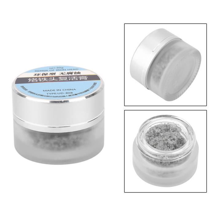 Caractéristiques : * Élimination efficace de l'oxydation : cette pâte de renouvellement de pointe de fer à souder est conçue pour éliminer rapidement l'oxydation et restaurer la pointe de soudure pour la surface, performance optimale lors de l'utilisation. Application principale : la pâte sert à nettoyer la couche d'oxyde noir de la pointe du fer à souder, à enlever la couche d'oxyde et à réétamer la panne à souder pour lui donner un aspect neuf et prolonger sa durée de vie * Formule respectueuse de l'environnement : fabriqué à partir d'ingrédients sans plomb, ce produit est sans danger pour les utilisateurs et l'environnement, permettant un entretien sans culpabilité des outils de soudure. Suppression rapide de l'oxydation : élimine efficacement l'oxydation des pointes de soudure pour les restaurer pour une performance maximale pendant vos projets. [Produit recyclable] Cette pâte revival fonctionne non seulement efficacement mais est également recyclable, alignée avec les pratiques durables d'entretien des outils. Pâte Revival étamage BOV Nettoyage De Pointe De Fer à Souder Réparation De Pâte De Pâte Revival Pointe Soudure *Pour et recyclable : la pâte revival est non seulement efficace mais également recyclable, favorisant des pratiques durables tout en conservant vos pointes de soudure en excellent état. Formule durable et sûre : fabriqué avec des ingrédients respectueux de l'environnement, ce produit garantit une utilisation sûre sans compromettre l'efficacité lors de l'entretien de vos outils. Utilisation conviviale : chauffez votre pointe de soudure à 300-360 degrés, trempez-la dans la pâte et nettoyez-la sans effort avec une éponge ou un fil de cuivre pour des résultats rapides. *Matériau : coque en plastique. CyberClean Professional 46295 Pâte de nettoyage 160 g *Taille : 6 g, 9 g, 16 g, 30 g (au choix)., Couleur : gris. Flux à souder (soudure) pour étain : chlorure de zinc - Astuces Pratiques
