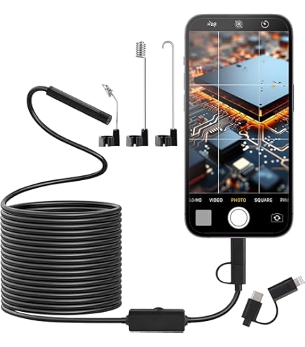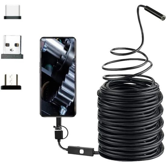 Remarques : Transition : 1 cm = 10 mm = 0,39 pouces., 1., En raison des effets de l'éclairage pendant la prise de vue et des différents réglages du moniteur, les couleurs du produit sur l'image peuvent différer légèrement de la couleur du produit 2., Les mesures étant prises à la main, les tailles indiquées peuvent varier de 0,5 à 2 cm. Sonde Flexible 2m Kisbeibi Endoscope, Caméra D'inspection 3 En 1 HD étanche Endoscope Pour Téléphone Portable Description : Endoscope 3 en 1 USB de type C, pratique à utiliser sur les téléphones portables, tablettes, ordinateurs et ordinateurs portables. Elle est livrée avec un adaptateur micro USB pour une utilisation sur les appareils Android. Le câble de l'endoscope USB est facilement accessible pour une variété d'endroits étroits, tels que les trous ou les tuyaux incurvés. Elle peut également atteindre la plupart des endroits et aider à améliorer la luminosité et la clarté de l'image. Convient pour les mesures de tuyauterie, l'observation sous-marine, le montage de pièces, les chantiers de construction, l'entretien automobile, les réparations, etc. Ultra haute résolution : vous pouvez enregistrer des instantanés et des vidéos haute résolution afin que vous puissiez voir exactement l'expérience d'enregistrement de l'endroit à réparer, de sorte que vous pouvez voir exactement l'endroit à réparer. Longueur : environ 1 m, environ 1,5 m, environ 2 m, environ 3,5 m, environ 5 m, environ 10 m., Contenu : 1 endoscope USB., 1 miroir d'ordinateur., 1 crochet., 1 aimant. Une interface connecte un téléphone Android de type C, un micro USB ou un PC USB. Distance focale effective : environ 3 à 10 cm. UNI-T UT667 - Caméra d'Inspection - Endoscope 1 m Endoscope industriel USB étanche IP67 VBESTLIFE - 6 lumières LED - 1,3... Caractéristiques : Nom du produit : endoscope USB., Couleur : noir.