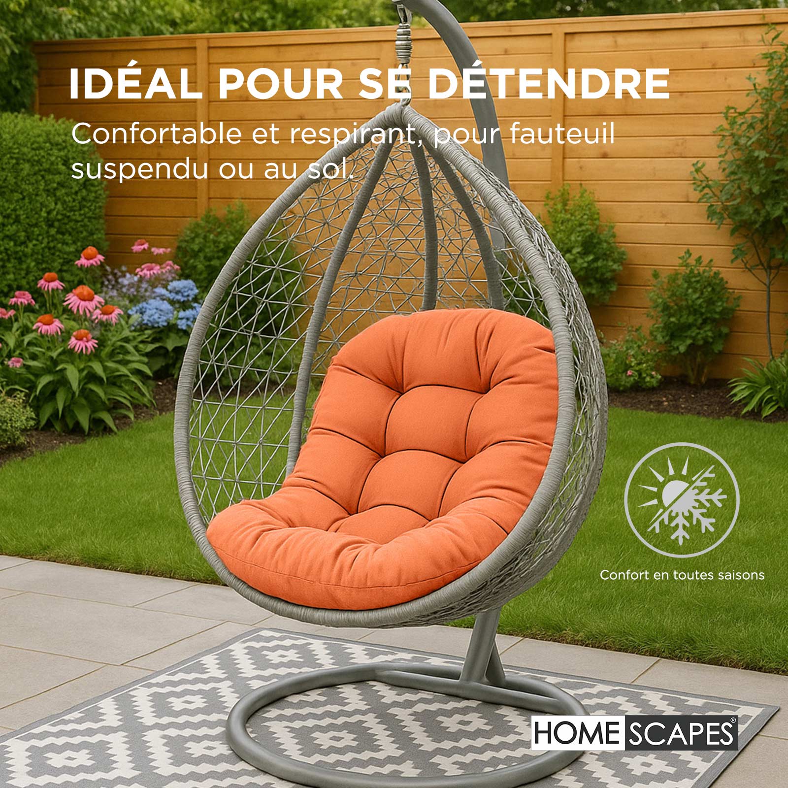 Ce coussin pour chaise suspendue est doux et généreusement garni de polyester épais. De magnifiques coussins pour fauteuil suspendu, conçus pour un usage quotidien sur un fauteuil de jardin. CONFORT OPTIMAL : Coussin spécialement conçu pour fauteuil suspendu ou fauteuil œuf., Dimensions : 80 x 120 cm. Détentez-vous grâce à ces coussins d’extérieur hypoallergéniques. COUSSINS DE LUXE POUR FAUTEUIL OEUF SUSPENDU Des tapis d’extérieur, des paillassons, des mangeoires à oiseaux et des coussins de sol sont également disponibles. Idéal pour remplacer un coussin de fauteuil œuf suspendu ou de balancelle. Rangez votre coussin lorsque vous ne l’utilisez pas., Non déhoussable. COUSSIN POUR FAUTEUIL SUSPENDU INTÉRIEUR EXTÉRIEUR DÉCOUVREZ NOTRE MARQUE : Homescapes propose une large sélection d’accessoires décoratifs pour la maison et le jardin. Coussin Fauteuil Suspendu Exterieur Coussin Pour Fauteuil Rotin, Coussin De Chaise Oeuf, Coussin De SièGe Intérieur Extérieur EN STOCK : Homescapes coussin pour fauteuil suspendu, gris SF2323A pas cher - Retrait & Livraison - Paiement 4X disponible. Mobilier de jardin à prix discount FACILE D'ENTRETIEN : lavable en machine et passe au sèche-linge à basse température. Apportez une touche de confort et de style à votre fauteuil œuf suspendu avec ce coussin d’extérieur en coton, conçu pour s’adapter parfaitement à la forme enveloppante de votre chaise suspendue. Fabriqué en tissu coton doux et résistant, il possède un garnissage généreux de 2000g de polyester luxueux, offrant un confort moelleux, durable et idéal pour vos instants de détente... Assurez-vous simplement qu’il soit bien sec avant de le réutiliser. DESIGN ÉLÉGANT : Disponible en 5 coloris modernes pour s’adapter à tous les styles de terrasses, balcons et jardins. COUSSIN POUR CHAISE SUSPENDUE FACILE D'ENTRETIEN Fauteuils suspendus intérieurs (2025 Utilisez-les dans le jardin, sur la terrasse, le balcon ou à l’intérieur. COUSSIN EXTÉRIEUR RESPIRANT POUR FAUTEUIL SUSPENDU Associez-le à nos galettes de chaise et coussins de banc assortis pour un ensemble harmonieux et confortable. Profitez du confort haut de gamme et du style raffiné des coussins pour balancelle Homescapes.