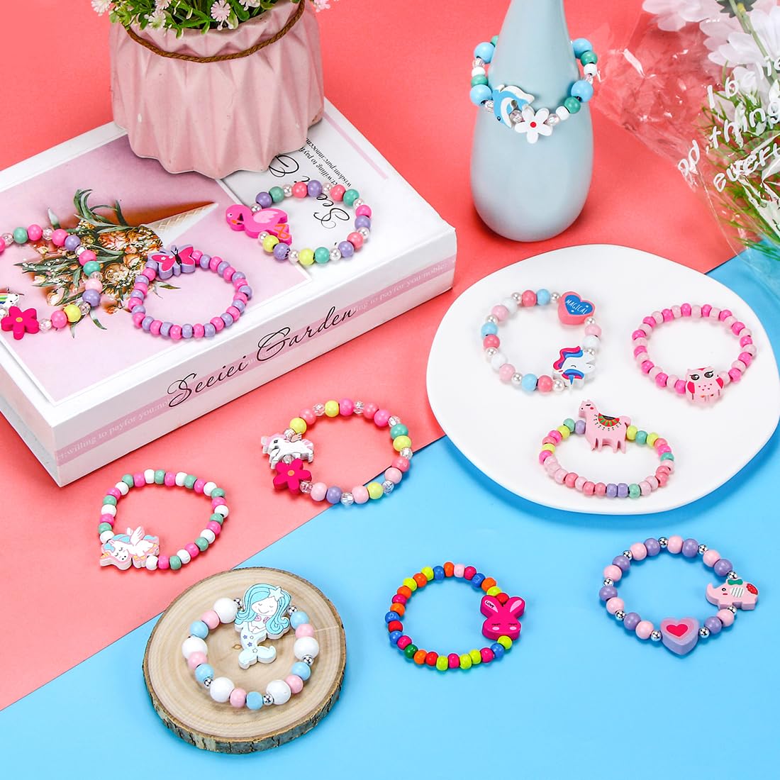 Cela peut également être utilisé comme cadeau surprise dans la vie quotidienne des enfants, afin qu'ils puissent se déguiser joyeusement et s'amuser sans fin Vous pouvez également partager ces bracelets avec vos amis pour renforcer vos liens d'amitié et créer des souvenirs inoubliables. Il existe 12 types différents de bracelets en bois, suffisamment pour que votre enfant puisse les partager avec ses chers amis et sa famille. Conception élastique, facile à mettre et à enlever. S'adapte facilement à n'importe quelle tenue pour rendre votre fille plus mignonne et charmante Bracelet fantaisie enfant avec une perle de culture et un papillon en... Faciles à assortir : ces bracelets en bois ont des couleurs vives et des styles variés qui attirent facilement l'attention des filles et répondent à leurs besoins quotidiens, comme les assortir à différentes robes, chemises, tenues, etc. Kit bijoux,Bracelets de métier à tisser à double décombres pour filles Le port de ces bracelets uniques rendra votre princesse plus vivante et plus remarquable dans la foule. Matériau et taille : nos bracelets sont composés de perles en bois naturel, la couche extérieure est non toxique et inodore, légère et sûre à porter. Bijoux Fille Colorés KGDUYC Bracelets Pour Enfants - 5 Pcs Bracelet Enfant Fille Bracelet Fille Large utilisation : ces bracelets conviennent comme cadeaux de fête, cadeaux de classe, prix de jeux, collections, séances photo, parfaits pour les fêtes d'anniversaire, les fêtes de princesses, les fêtes de licornes, les mariages, Noël, Halloween, la Saint-Valentin, les fêtes costumées ou d'autres activités de loisirs. Les enfants peuvent jouer avec leurs amis lors de fêtes ou utiliser ces bracelets comme accessoires quotidiens. Notre ensemble de bracelets d'amitié est un cadeau idéal pour votre enfant, votre fille, votre petite-fille, votre nièce ou votre sœur.
