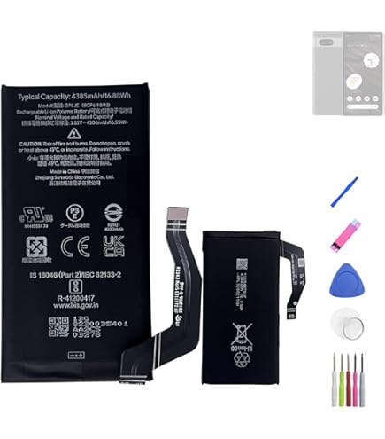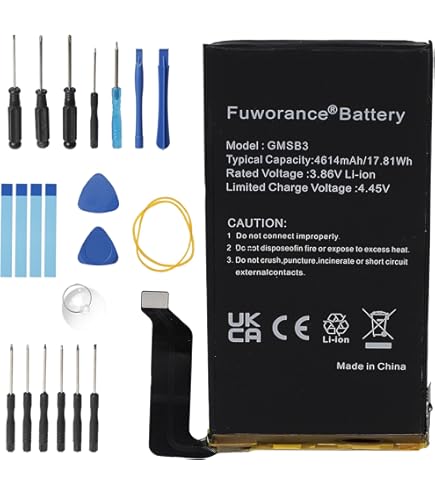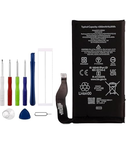 Compatible avec Google Pixel 7A GWKK3 GHL1X Téléphone mobile La batterie de remplacement pour Google Pixel 7a, que vous pouvez utiliser si la batterie de votre appareil doit être remplacée, qu'elle ne se charge plus à 100 %, qu'elle est endommagée ou qu'elle est devenue obsolète au fil du temps Recharge rapide: avec la technologie de charge rapide, ces batteries sont prêtes à partir en un rien de temps Protections multiples : équipé de protections contre la surcharge, la décharge excessive, les courts-circuits et le contrôle de la température pour garantir la sécurité et prolonger la durée de vie de la batterie L'installation est simple et livrée avec un kit d'outils professionnel Batterie Pixel 6a Fuworance 4385mAh 3.85V GP5JE Batterie De Remplacement Pile Téléphone Haute Capacité Recharge Rapide Performance fiable: construit avec des caractéristiques de sécurité avancées pour prévenir les fuites et assurer une alimentation électrique constante Charge rapide pour gagner du temps : prend en charge la technologie de charge rapide et est compatible avec les protocoles de charge rapide courants, réduisant le temps de charge et remettant votre appareil à pleine puissance rapidement Remplacement facile : conçu spécifiquement pour vos appareils, il s'adapte parfaitement à la taille de la batterie et aux connecteurs d'origine. Batterie haute capacité pour une performance durable : construite avec des cellules de qualité supérieure, cette batterie haute capacité (3., 85V/4385mAh/16., 88Wh) prolonge considérablement le temps d'utilisation de votre électronique, parfaite pour les appels, les jeux et le streaming Aazon.co: AXSHARKS Batería de repuesto para Pixel 7A, GP5JE Compatibilité parfaite : Compatible avec Google Pixel 7A GWKK3 GHL1X Mobile Phone Batterie Battery AkkU Premium pour Google Pixel 7A GP5JE