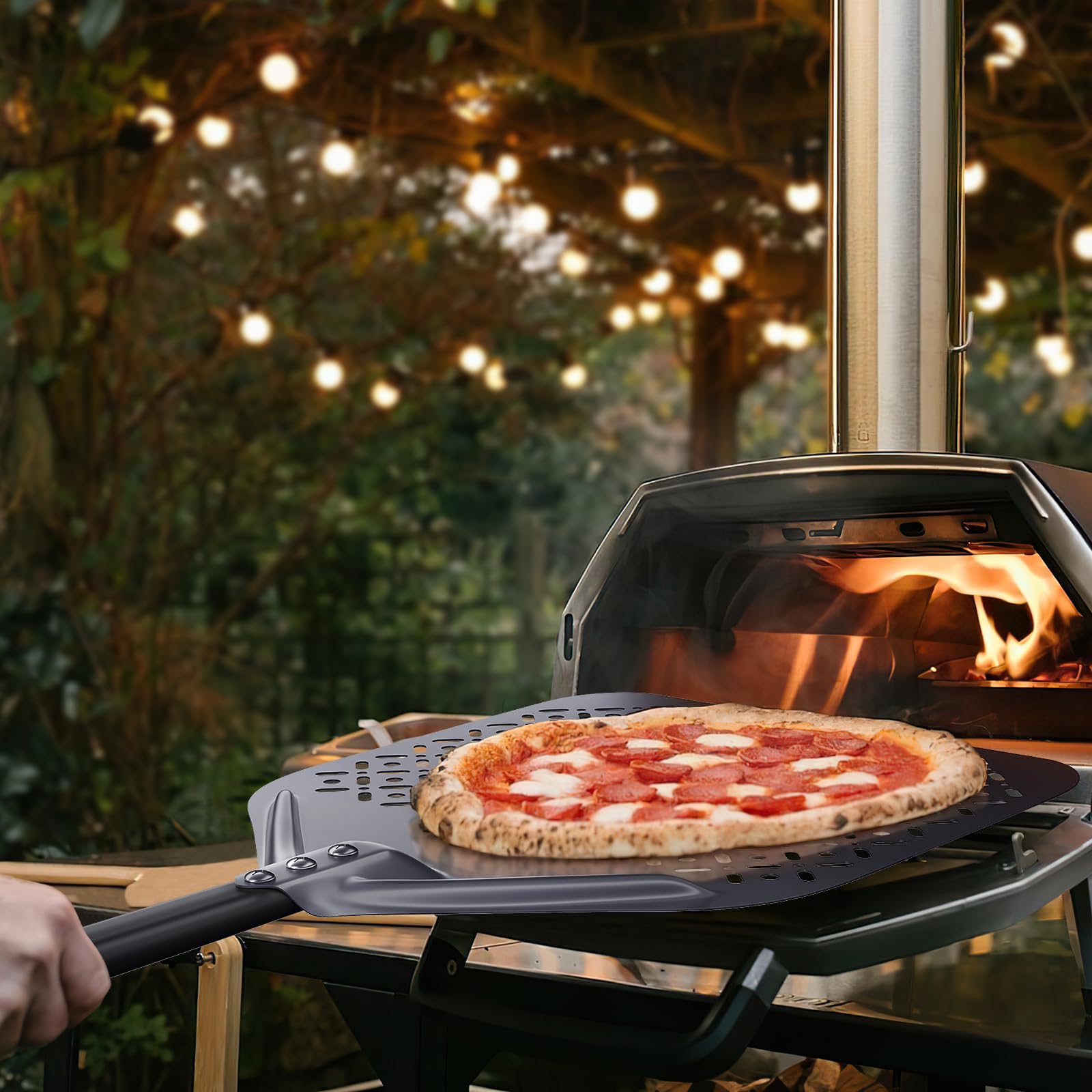 Se glisse facilement sous la pizza et le pain, soulève et déplace facilement la pizza Longue poignée : la pelle à pizza mesure 118 cm de long, y compris la poignée. Cette pelle à pizza NUTUNI en aluminium anodisé dur est conçue pour les fours à pizza (Ooni Koda 14, Fyra 14, Karu 14, Gozney Dome...). Tête perforée (34,7 x 45 cm) pour évacuer la farine et obtenir une croûte croustillante AZBBQ® Pelle à pizza de qualité supérieure - 30 x 30 x 66 c - Pelle à... TESTA RETTANGOLARE PERFORATA : la testa in alluminio fresato, che misura 34,7 cm x 45 cm, presenta un bordo smussato che rende più facile afferrare la pizza, consentendo una scivolata più fluida nel forno Pelle Pizza Perforée Pro Pelle à Pizza Aluminium Perforée - 14 Et 8 Pouces - Pro Et Maison Pelles à Pizza Rend le fond de la pizza plus croustillant Poignée amovible : la pelle à pizza professionnelle a une longue poignée qui maintient la main loin du four chaud lors du retrait de la pizza rotative. Aluminium NUTUNI Evoluzione En Aluminium Anodisé S.H.A. Ronde Perforée Pelle à Pizza La tête elle-même mesure 34,7 x 45 cm de long et se fixe solidement à la poignée avec 3 vis. Nouveau design avec trou, pelle à pizza, long manche (14 pouces) fabriqué en aluminium anodisé dur ; poignée en silicone solide pour une meilleure prise en main ; tête perforée conçue pour des températures élevées ; design léger et ergonomique ; design compact pour un rangement facile. Facile à installer et à nettoyer ; facile à utiliser ; compatible avec les fours à pizza et autres fours à gaz et à bois Comprend 3 pièces et 7 vis pour un montage facile Dimensions de la tête : 34,7 cm de large × 45 cm de long Longueur totale : 118 cm