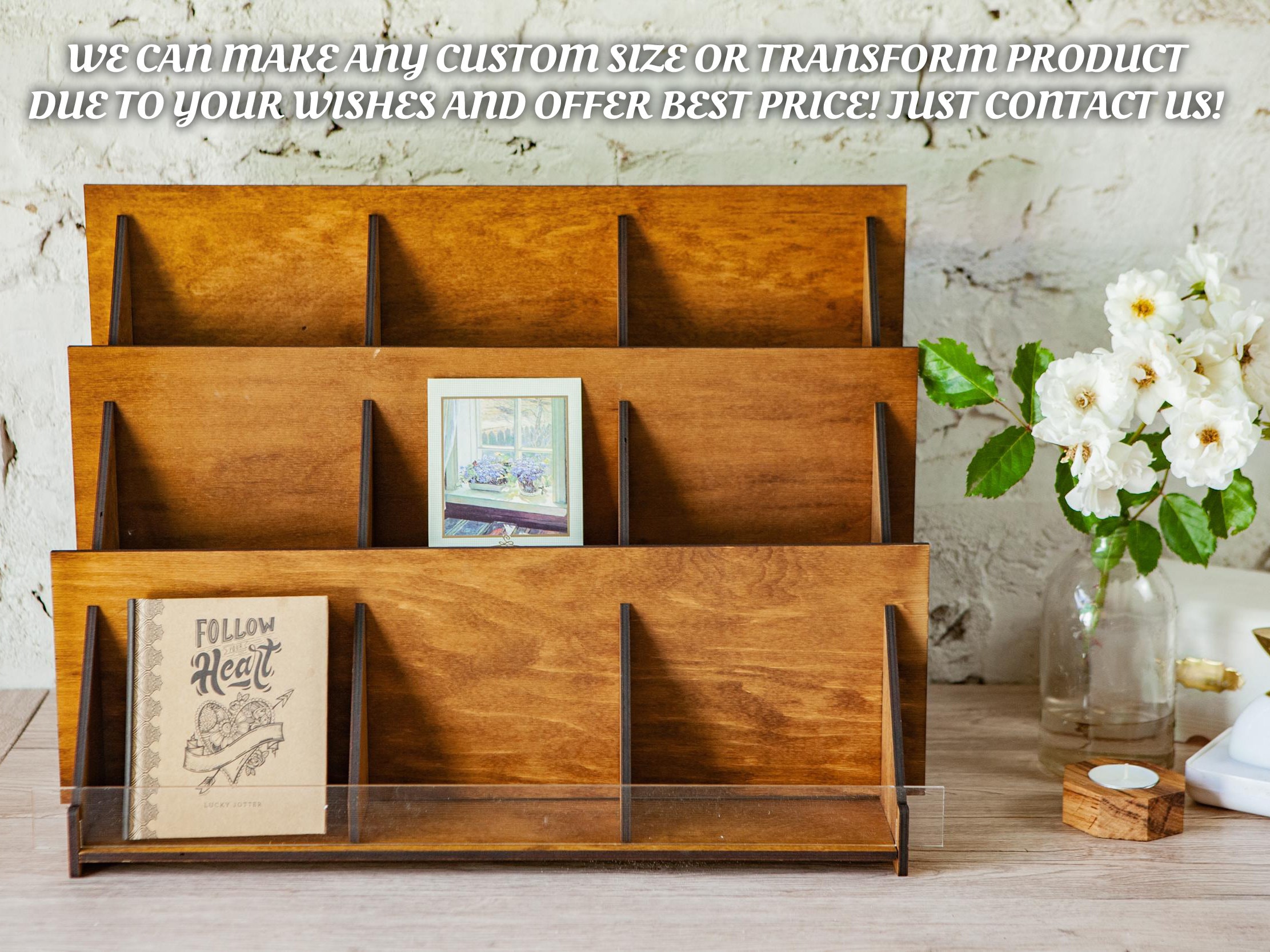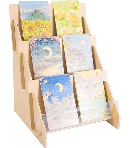 Présentoir à 4 étages et étagère de rangement en bois de buis, facile à monter et à démonter, robuste et pratique. Design à 4 niveaux : ce porte-carte de vœux est disponible en deux tailles : 41,5 × 26 × 36,5 cm et 30 × 26 × 36,5 cm. Le design à quatre étages de l'étagère d'exposition offre beaucoup d'espace pour présenter tous les types de cartes de vœux et garantit que vos cartes sont clairement affichées ● Couleurs : bois brut ● Poids du colis : 400 g / 14,11 oz ●Dimensions de l'emballage : 32 x 26 x 3 cm / 12,6 x 10,24 x 1,18 pouces Contenu : 11 morceaux de bois., Conseils : 1., Les mesures étant prises à la main, les tailles indiquées peuvent varier légèrement., 2., Les couleurs peuvent varier légèrement en raison des différentes résolutions d'écran. Points forts du design : l'étagère a un design sobre et la surface en bois lisse peut être décorée comme vous le souhaitez, par exemple par exemple avec des graffitis, de la peinture ou des autocollants, de sorte qu'il peut être personnalisé selon vos préférences personnelles. Nombreuses utilisations : l'étagère d'affichage peut être utilisée pour présenter des cartes postales, des cartes, des brochures, etc. Presentoir Carte DOSTATNI Lot De 4 Présentoirs à 3 Niveaux En Bois De Pin Pour Brochures, Cartes Postales Et Comptoir, Présentoir En Bois Pour Magazines, Brochures, Menus Présentoir Table Brochures Cartes Grâce au système d'emboîtement précis, les planches en bois peuvent être rapidement assemblées en une étagère de présentation complète. Plusieurs objets peuvent être placés à chaque étage qui sont facilement accessibles en même temps. Nous vous remercions de votre compréhension Étagère de présentation en bois : l'étagère de présentation est fabriquée en bois de buis robuste et durable. Ensemble de billets ou de cartes de vœux pour la Journée de la femme Lors du premier déballage, il dégage une forte odeur de bois, mais elle disparaît d'elle-même après un certain temps dans un environnement bien ventilé. Carte De Vœux De Noël La Carte Verticale Est Idéale Pour Les Cartes De...