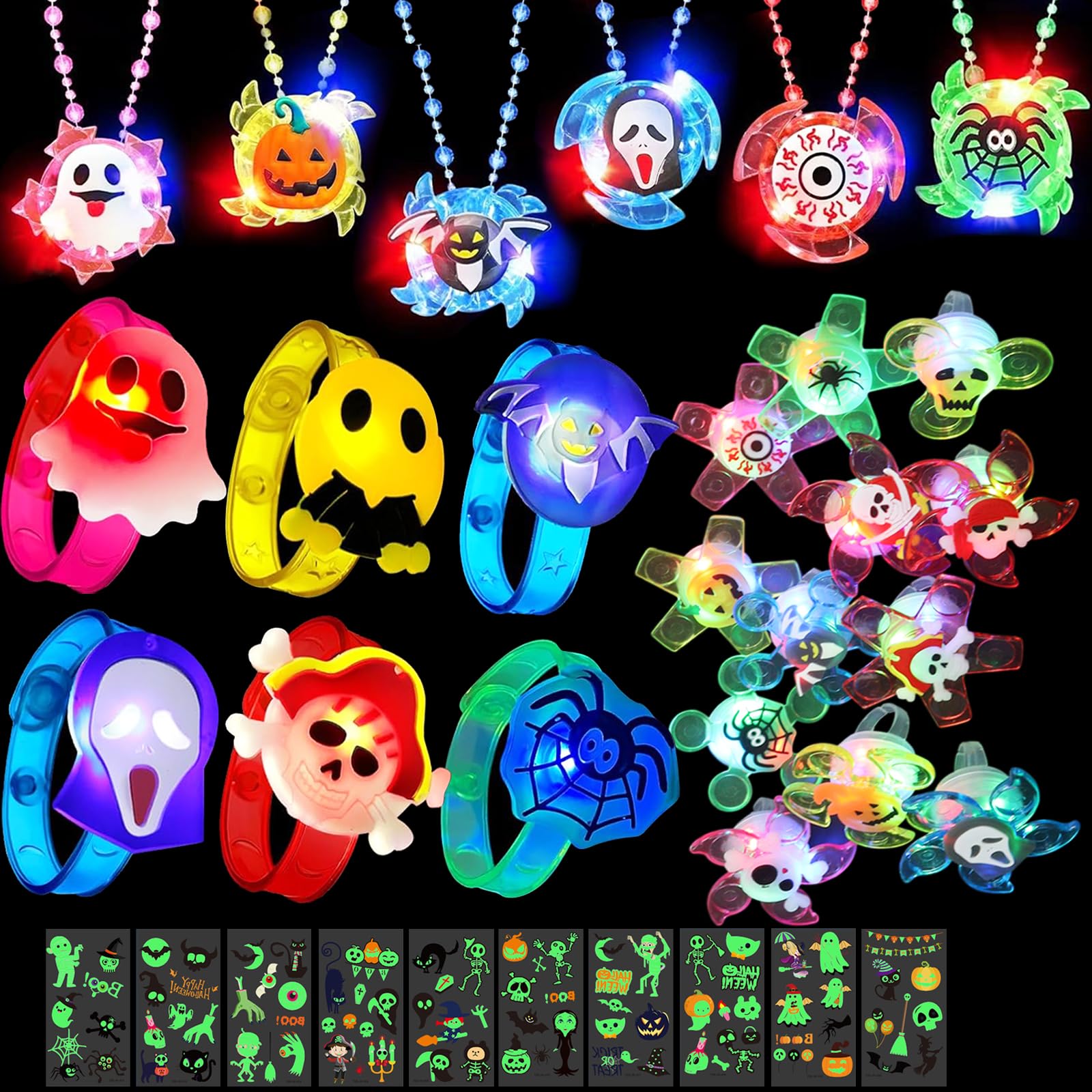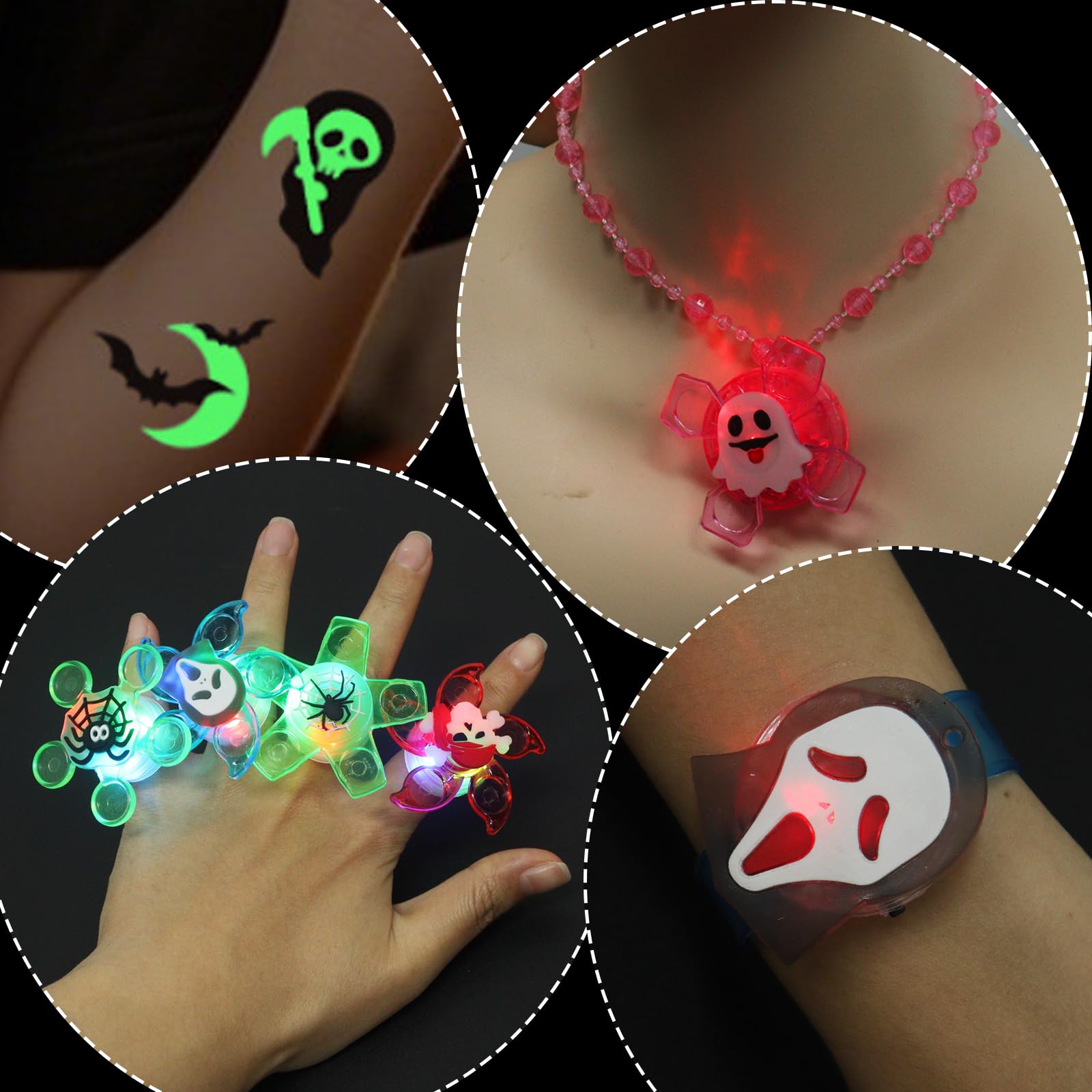 CALENDRIER DE L’AVENT & CADEAUX POUR LES FÊTES UNE ÉCHAPPÉE FÉÉRIQUE À... Les piles sont emballées en toute sécurité et faciles à remplacer. Ces jouets d'Halloween lumineux conviennent aux enfants pour jouer et porter lors des fêtes d'Halloween. Avertissement De Sûreté Non Elles brillent et sont idéales pour les enfants à porter à Halloween et aux fêtes d'Halloween et pour créer une ambiance d'Halloween Ils offrent plaisir et aventure et aident à transmettre l'ambiance d'Halloween. Cadeau parfait pour Halloween : ces jouets lumineux ne sont pas seulement adaptés pour la fête, mais aussi comme cadeau pour les enfants. Matériau de remplissage de sac à bonbons d'Halloween : ces jouets polyvalents rendent les « bonbons ou acides » encore plus excitants. Description du produit Ce produit est une merveilleuse collection de jouets lumineux pour Halloween qui sont parfaits pour les fêtes, que ce soit pour Halloween ou les anniversaires d'enfants. Que ce soit comme petit objet pour une fête ou comme cadeau d'anniversaire, ces jouets seront certainement appréciés par les enfants Avec ces objets lumineux, vous pouvez pimenter l'atmosphère d'une fête d'une manière passionnante et magique et certainement attirer tous les regards. Guirlande lumineuse 40 pièces pour décorations d'Halloween 【Petits cadeaux pour les fêtes d'Halloween】Le lot de 34 pièces comprend une variété de jouets lumineux : 6 bracelets lumineux, 6 guirlandes lumineuses rotatives et 12 anneaux clignotants. Caractéristiques du produit : 1., Fonction d'éclairage de haute qualité : les jouets ont une forte puissance lumineuse. Ce sont des accessoires idéaux pour les enfants lors des fêtes d'Halloween Contenu de la livraison : 34 petits cadeaux pour les fêtes d'Halloween. - Matériaux : plastique et textiles pour les bracelets, guirlandes lumineuses et anneaux ; papier pour les autocollants. En outre, il y a 10 autocollants imprimés avec des motifs hantés tels que citrouille, esprit, araignée. Sac à Bonbons Halloween Remplissage Petits Cadeaux Pour Les Fêtes D'Halloween, Jouets Lumineux Cadeaux Sac à Bonbons Ambiance Fête Les bords et les coins des jouets sont arrondis pour éviter les blessures, de sorte que vous n'avez pas à vous soucier de la sécurité des enfants. Jouet lumineux à thème d'Halloween : le jouet contient des éléments d'Halloween tels que des citrouilles, des fantômes, des chauves-souris, des sorcières, des squelettes et des chats noirs qui sont à la fois mignons et un peu effrayants.