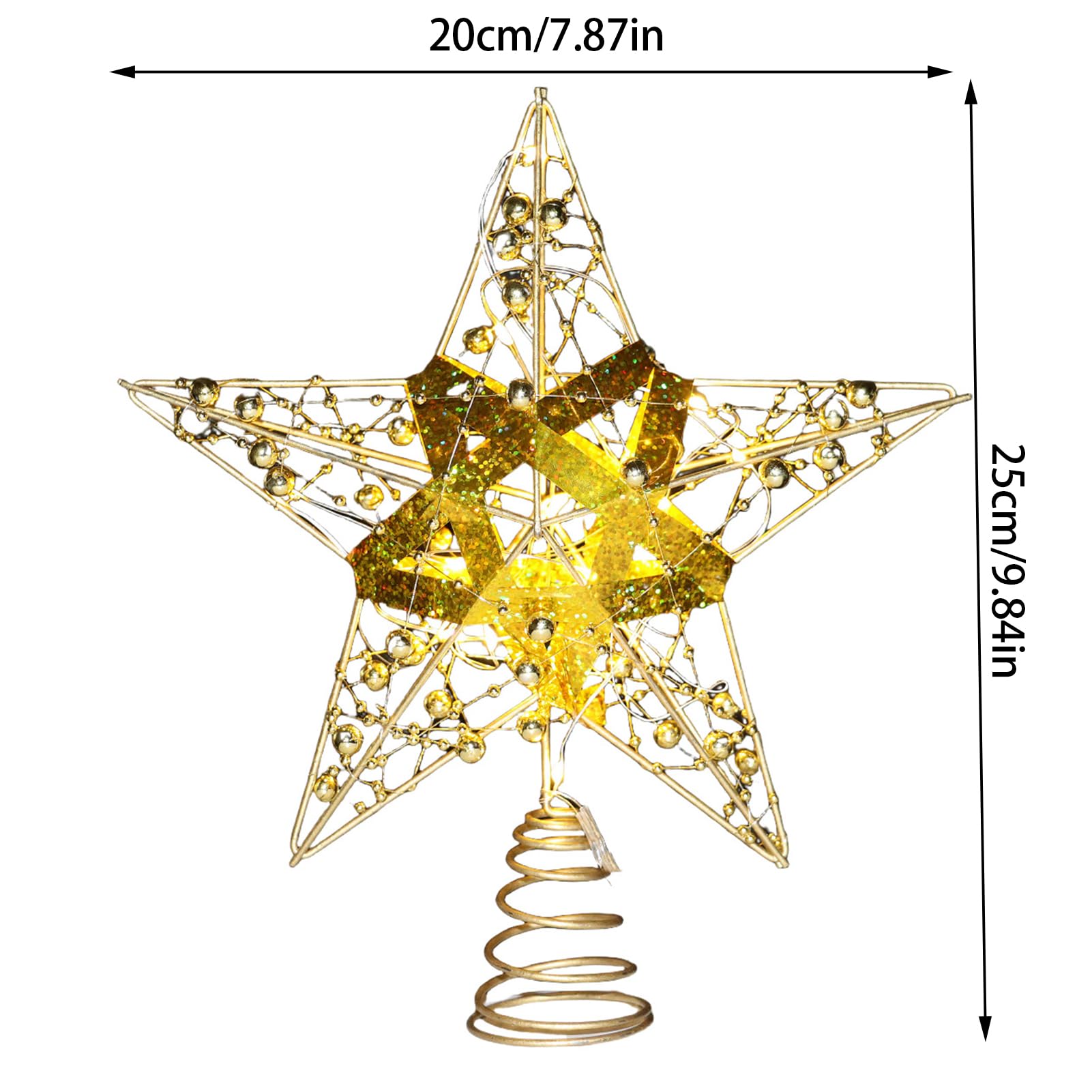Vintage : ajoutez une touche rétro à la décoration de Noël avec cette décoration de sapin de Noël classique. étoile LED Paillettes Étoile Lumineuse De Noël Grande à Suspendre - Tube Lumineux 90 LED 8 Jeux Pour Décorations Cime Sapin Traditionnelle Étoile d'arbre de Noël | Étoile de coupe d'arbre à paillettes pour Noël, décoration de coupe d'arbre de Noël avec lumière, décoration de saison de Noël pour décoration festive de fête de famille Ajoutez une touche classique à votre sapin de Noël avec cette décoration vintage en forme d'étoile. Matériau de haute qualité : cette étoile de sapin de Noël est construite pour durer avec des matériaux métalliques robustes qui résistent à la déformation. Installation facile : notre étoile lumineuse pour sapin de Noël convient à la plupart des arbres du marché. Brille intensément et rehausse la décoration de Noël chaque année. Dimensions : 20 x 15 x 5 cm. Fixez-le sans effort avec 1 partie fixe ferme pour un aspect surélevé qui ne tombera pas C'est un cadeau de Noël idéal pour vos amis et votre famille. Caractéristiques : Nom : décoration de sapin de Noël en forme d'étoile. Largement utilisé : la charmante atmosphère de Noël avec notre étoile illuminée pour la décoration d'arbre. Décoration d'étoile d'arbre de Noël, lumière d'étoile d'arbre de Noël à batterie, adaptée aux Imágenes y Gifs Animados ®: IMÁGENES DE ESTRELLAS DE COLORES Contenu de la livraison : 1 décoration en forme d'étoile pour sapin de Noël.