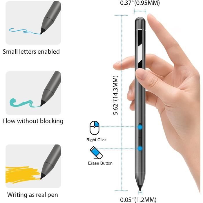 Pointe magnétique : ce stylet fin est livré avec 2 pointes interchangeables et est fixé magnétiquement sur le côté de l'appareil pour une fixation facile. Ou-Stylet électromagnétique pour écran de téléphone portable, adapté Ce stylet pour ordinateur portable HP a une sensibilité à la pression de 1024, les mêmes performances que le stylet HP modèle 1MR94AA et la même liste de compatibilité que le stylet inclinable rechargeable HP MPP 2.0 Faible latence : le stylet est doté de la technologie MPP 2., 0 améliorée pour une latence réduite, des transitions de couleurs plus fluides et des temps de réponse améliorés sur les appareils à écran tactile. Facile à utiliser : stylo numérique actif, juste une légère pression pour ressentir la précision de la pointe du stylo, vous pouvez éditer, dessiner, écrire, griffonner, etc. HEN--Pour stylet Duet 5 Stylet Actif pour écrans Tactiles, Stylet... Compatibilité étendue: stylet rechargeable, compatible avec HP Pavilion x360, HP Spectre x360, HP ENVY x360 et autres séries. Description du produit Stylet pour écrans Tactiles pour Ordinateur Portable, Rechargeable, sensibilité à la Pression de 4096 Niveaux avec 2 Embouts Interchangeables pour HP Pavilion X360 Spectre X360 Embouts Interchangeables Magnétiques Accessoire Tablette Hp Stylet Rechargeable 4096 Niveaux Pression Pour HP Pavilion/Spectre X360 | MPP2.0, Boutons Programmable Stylus HP X360 Stylet Telephone