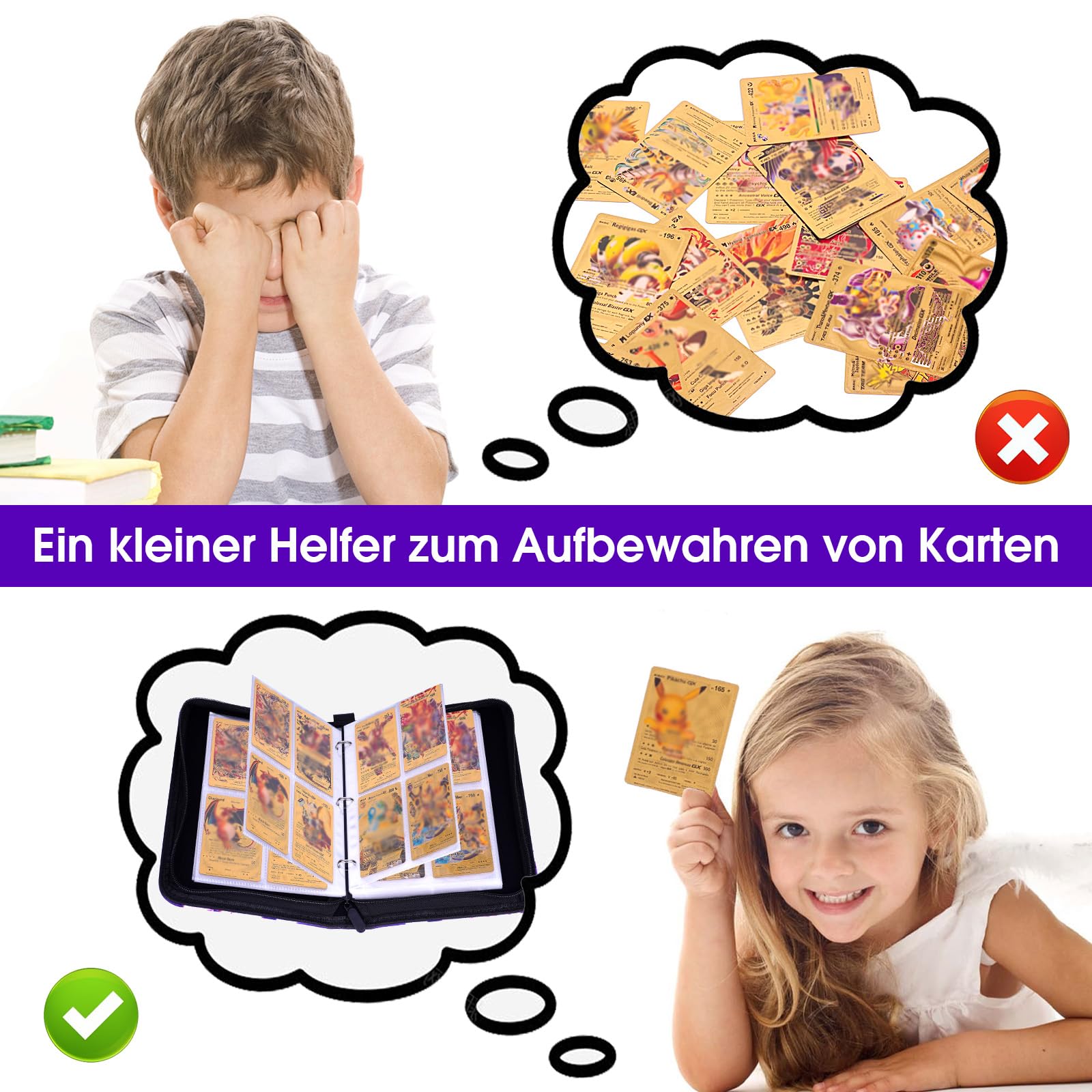 Album Pokemon Classeur Carte Pokemon,Capacité De 50 Pages De 400 Cartes, Porte Cartes,Organisateur De Cartes,Porte Cartes En Cuir Imperméable Fermeture éclair, Un Cadeau Les Garçons Et Les Filles(Slong400 Album Carte Pokemon - Design pratique : 4 poches par page pour un rangement ordonné et sécurisé. Cela permet de stocker jusqu'à 400 cartes tout en maintenant une organisation parfaite. Albums de Cartes de Football, Classeur Cartes à Collectionner de Football, Classeur Pour Cartes à Collectionner, 50 Pages CaMatériau de Qualité Supérieure: La fermeture à glissière de qualité garantit que le classeur reste parfaitement fermé, empêchant ainsi les pages ou les cartes de tomber. Parfait pour stocker différentes cartes, ou comme un album pour les fournitures scolaires. Si vous avez la moindre question ou rencontre un problème, contactez-nous, et nous nous engageons à vous fournir la meilleure solution. Compatible avec diverses cartes: Ce classeur est compatible avec de nombreuses séries de cartes : cartes de football, cartes de jeu, cartes de collection, et bien plus encore. Cadeau Élégant et Design Unique:Les enfants adoreront ce classeur avec ses designs colorés et ses graphismes vibrants, qui le rendent unique et attrayant. Avec son design pratique et sa couverture robuste, il protège votre collection et vous permet de l’emporter facilement partout avec vous. Cartes à Collectionner Et Accessoires Oirigaga Album De Collection Pour Cartes De Football, 4 Pochettes, Avec Fermeture éclair, Poignée De Transport Et 50 Pochettes Pour 400 Cartes, Classeur à 3 Anneaux, En **Description du produit** L'album de collection football comprend 50 pages, chacune avec 4 poches, offrant un total de 400 cartes. Porte Carte à Collectionner, Classeur Cartes 50 Pages Capacité de 400... Ce matériau de qualité protège vos cartes de la décoloration tout en facilitant le nettoyage de l'album. La couverture imperméable protège contre l'humidité, tandis que la fermeture à glissière et la poignée garantissent que votre collection est toujours en sécurité et facile à transporter. La poignée pratique permet une portabilité facile, que ce soit pour les enfants ou les adultes, ce qui en fait un choix idéal pour les déplacements. **Contenu de l’emballage** - 1 album de collection football **Scénarios d'utilisation** 1., À la maison : Idéal pour exposer et ranger vos cartes de football sur une étagère ou un bureau., 2., En déplacement : Parfait pour transporter votre collection lors de matchs, de rencontres de collectionneurs ou chez des amis., 3., Pour les enfants : Un excellent cadeau pour les jeunes collectionneurs qui veulent organiser et protéger leurs cartes de football., 4., Pour les événements : Pratique pour les salons, les foires ou les rencontres de fans, afin de garder votre collection à portée de main. pacité de 400 Cartes, Album Carte, Football PU Portable Album Willdone Classeur Carte pour Pokemon, 50 pages de 400 Cartes, Album pour Pokemon, Album Cartes à collectionner, Porte Cartes en cuir Imperméable Fermeture éclair, un cadeau les garçons et les filles - Portabilité : Poignée et fermeture à glissière pour un transport facile et sûr. Protection à Double Face: Gardez vos cartes de collection bien organisées et à l'abri de la poussière.