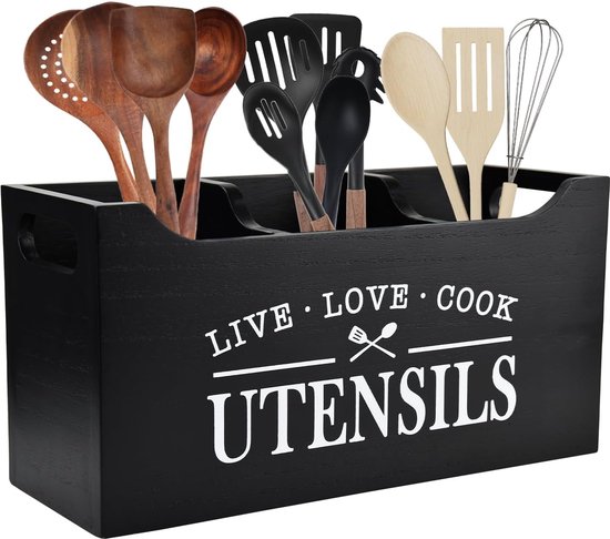 Porte-ustensiles De Cuisine Robuste Avec 4 Compartiments Et