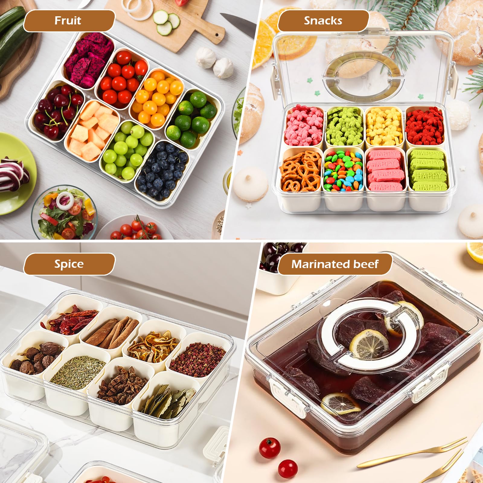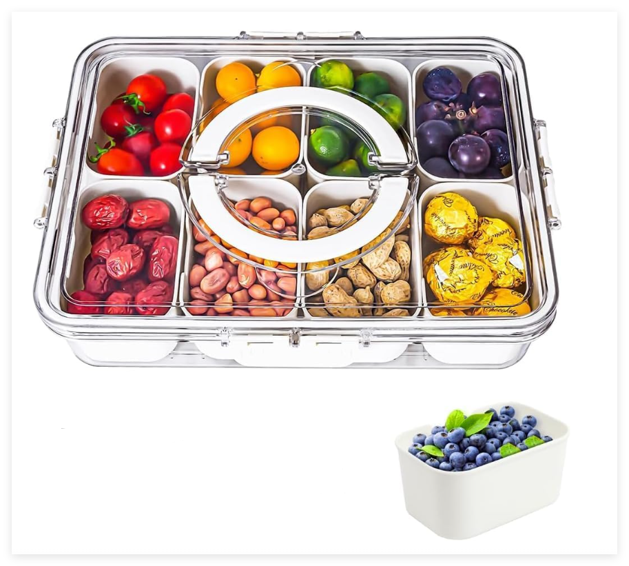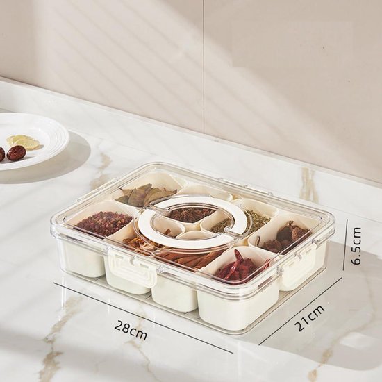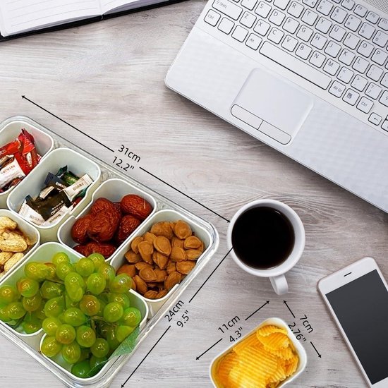 Bol Maju Nutrition A Compartiment 2 Pièces Boîte à Collation Avec 8 Compartiments Et Couvercle U2013 Plateau De Service Divisé Pour Snacks, Bonbons, Noix, Fruits, Légumes U2013 Organisateur De Stockage Portable Avec 【CONCEPTION AMOVIBLE POUR NETTOYAGE FACILE】Le design amovible de cette boîte à en-cas facilite le nettoyage. Matériaux sûrs et sains] L'extérieur de cette boîte de conservation alimentaire est fabriqué à partir de matériaux de haute qualité et possède un joint en silicone sur le couvercle, ce qui est sûr, sain, écologique et a une longue durée de vie Notre boîte à snacks avec 8 compartiments offre une solution pratique pour stocker divers types de snacks, tels que chips, noix, fruits ou bonbons. Grâce au couvercle transparent avec verrouillage à clip, vos snacks restent frais et protégés de l'humidité (Note : Ni la boîte transparente ni les compartiments ne passent au micro-ondes ni au lave-vaisselle !, ) Chaque compartiment peut être retiré séparément, permettant ainsi une meilleure organisation et un rangement pratique de vos snacks. PLATEAU DE SERVICE divisé avec couvercle, plateau de fruits secs pour La boîte ronde avec compartiments est également parfaite pour des soirées cinéma à la maison ou des moments détente sur le canapé. Gardez vos snacks frais et bien protégés avec notre boîte à snacks pratique dotée de compartiments et d'un couvercle. La poignée robuste permet de transporter vos snacks partout – parfaite pour les pique-niques, les fêtes ou l'utilisation quotidienne., Avantages : 1., Boîte à snacks avec couvercle et 8 compartiments séparés pour un rangement organisé., 2., Matériaux alimentaires et fermeture hermétique assurent la fraîcheur et évitent le transfert d'odeurs., 3., Facile à nettoyer et résistante – idéale pour une utilisation quotidienne. Vous profiterez ainsi de la fraîcheur et du goût authentique de vos snacks plus longtemps. Caractéristiques : Couleur : Transparent Matériau : Plastique Dimensions : 31x24x7 CM Contenu : 1x boîte à snacks avec couvercle et 8 compartiments 【BOÎTE À EN-CAS MULTIFONCTION】 Idéale pour une grande variété d’occasions : dips de fête, snacks à la plage, condiments pour glaces, repas pour enfants ou même salades. 【UTILISATION POLYVALENTE】Avec sa poignée pratique, cette boîte à compartiments est facile à transporter lors de pique-niques, réunions de famille ou voyages. Grâce au couvercle transparent avec verrouillage à clip, vos snacks restent frais et protégés de l'humidité.