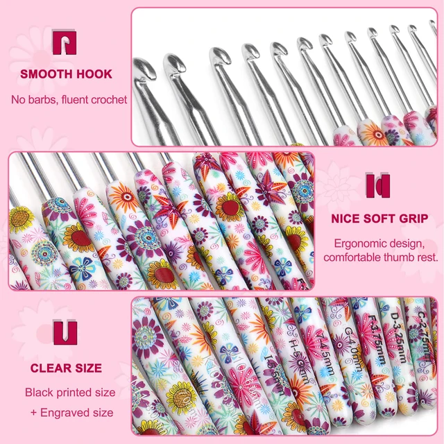 Set De 37 Crochets Avec étui, 14 Pièces, Poignées Ergonomiques Souples Kit De Crochet Pour Debutants Et Adultes Pour Mains Arthritiques Vodiye Lot de 37 crochets à crochet en aluminium coloré de haute qualité avec poignée ergonomique, aiguilles à crochet pour mains arthritiques, avec marqueurs de point et aiguilles émoussées à gros chas 14 crochets de différentes tailles, adaptés aussi bien aux débutants qu’aux crocheteurs confirmés. Équipé de 14 marqueurs de points et 9 aiguilles à laine à gros œil et embout arrondi, ce kit vous accompagne dans davantage de projets : couvertures, serviettes, chapeaux, etc Facile à tricoter lors du tricot de motifs multicolores, les marqueurs de maille multicolores peuvent vous aider à marquer un point pour marquer un changement de couleur, un point dans un motif ou une rangée/maille pour augmenter ou diminuer