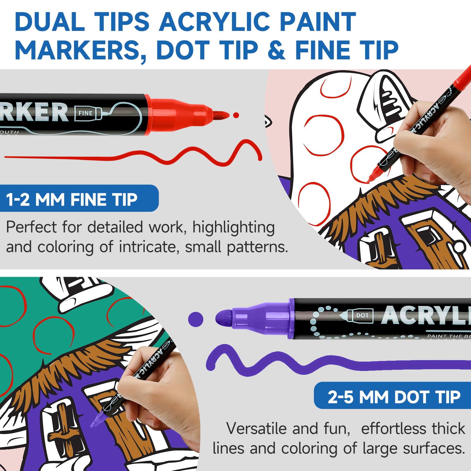 Guangna Lot de 12 arqueurs de peinture acrylique à double pointe avec Tooli Art Metallic Shuttle Art Lot De 60 Marqueurs De Peinture Acrylique à Double Pointe, Pointe Pinceau Et Pointe Fine Pour Peinture Sur Roche, Céramique, Bois, Toile, Plastique, Verre, Pierre, Calligraphie Feutre Séchage rapide et durable : conçus pour un impact durable, nos marqueurs acryliques sèchent rapidement et adhèrent bien à diverses surfaces. Variété éclatante : avec 60 couleurs riches, nos stylos de peinture acrylique offrent des possibilités créatives infinies Parfaits pour la peinture sur roche, l'artisanat en bois, l'art sur toile, etc. Double pointe : fine et feutre pour plus de précision et de fluidité : chaque marqueur de peinture dispose d'une pointe fine pour un travail détaillé et d'une pointe en feutre plus large pour une couverture lisse. Avec une encre certifiée de haute qualité, ces stylos de peinture sont sûrs et adaptés aux enfants et aux adultes pour toutes sortes de peintures DIY. [Un étui pour marqueurs de base facile à ranger] Il est beaucoup plus durable que n'importe lequel des ensembles de stylos précédents fournis Idéal pour la calligraphie, le contour, le coloriage et la décoration, ces stylos rendent les techniques de commutation sans effort. Zenacolor Feutre Acrylique à Double Pointe (Pointes Fines et Pinceau) - 18 Couleurs Uniques de Marqueur Acrylique pour Diverses Surfaces et Œuvres d'Art - Feutres Peinture Utilisation polyvalente : parfaits pour les projets de bricolage, la calligraphie et les travaux manuels festifs, ces stylos de peinture acrylique sont parfaits pour toutes les occasions. Ces stylos vous permettent d'exprimer votre vision artistique avec confiance et style.