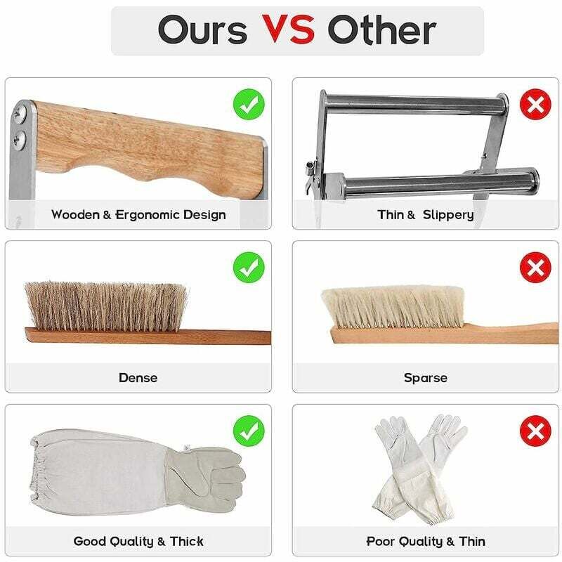 Accessoires Apiculteur Débutant Kit De 8pcs Outil Apiculture Abeile Outil Ruche Pour Apiculteur E42705 - Animalerie Kit Apiculture Pour Miellerie Pièges de la ruche : pour remplir les pièges et les placer dans différentes parties de la ruche (en fonction de l'emplacement de la ruche). 【FUMOIR DE LA RUCHE EN ACIER INOXYDABLE 】 Le fumoir de la ruche est fabriqué en acier inoxydable et a pour fonction de produire de la fumée pour calmer les abeilles et vous protéger des piqûres. Taille : 41*28*15cm Poids : 3,4 kg Quantité : 22 pièces. Certains outils sont munis de poignées en bois pour éviter les douleurs aux mains. Les différents outils permettent de manipuler les abeilles en toute sécurité. Les gants et les combinaisons de protection offrent une protection supérieure pour le haut du corps et garantissent un confort tout au long de la journée dans la plupart des conditions météorologiques. 【54 pastilles pour l'enfumoir】 ni trop, ni trop peu. Le bord tranchant permet de gratter la propolis, la cire et le nid d'abeilles de la ruche. Cage en plastique pour apiculteur , 1 pièce, équip... – Grandado Porte-cadres de la ruche : se fixe sur le côté du corps de la ruche et permet de garder les cadres à l'abri de l'inspection. Ruche pour la Reine des Abeilles pour la Récolte B... – Grandado Cage de collection d'abeilles Bêche/fourche de nettoyage de la ruche : utilisée pour nettoyer les résidus de cire/enlever et traiter les zones concaves de la ruche. Le bouclier thermique et la protection du crochet circulaire, sûrs et faciles à utiliser, entourent l'enfumoir pour éviter les brûlures. Tube de marquage de la reine : pour marquer la reine. Clip de la cage à reine : utilisé pour attraper ou maintenir la reine de la ruche, ou à d'autres fins. Les pastilles fumantes sont fabriquées à partir de plantes naturelles inoffensives pour les abeilles. G5AB – porte-outil en plastique pour perceuse élec... – Grandado Porte à miel : se connecte à l'extracteur de miel pour drainer facilement le miel. Le kit est parfait pour les besoins de l'apiculture et peut être utilisé comme kit de démarrage pour les futurs apiculteurs.
