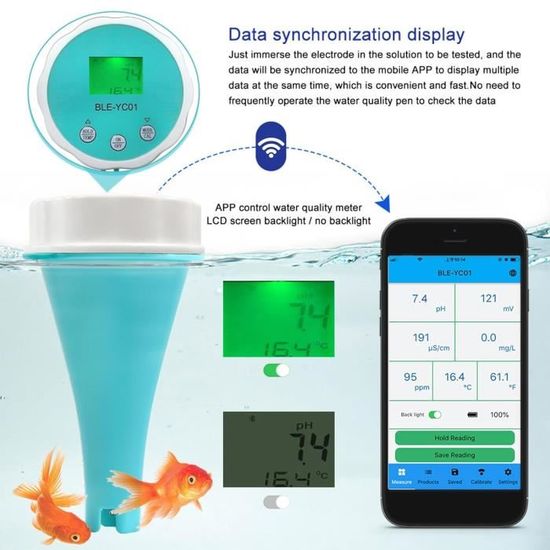 [Capacités de test 6 en 1] Ce testeur d'eau multifonction mesure le pH, ORP, la température, et plus encore, pour des applications dans les tests d'eau potable, la culture hydroponique et l'entretien de l'aquarium. * Calibrage sans effort : équipé d'une sonde en verre haute sensibilité, le testeur dispose d'une méthode d'étalonnage à 5 points, permettant des ajustements faciles avec des poudres d'étalonnage incluses pour maintenir des mesures précises. Ce testeur innovant vous permet de mesurer rapidement et précisément six paramètres importants de l'eau, y compris le pH, la température, le niveau de chlore, l'alcalinité, l'acidité et la quantité de solides dissous Qualité de l'eau Multi-paramètres 5-en-1 PH-EC CF TDS (ppm) testeur... Gestion des données basée sur le cloud : le testeur numérique de qualité de l'eau enregistre et partage sans effort vos résultats de test via une application mobile qui offre une transmission de données en temps réel pour un accès sécurisé. Testeur de qualité de l'eau WiFi intelligent Tuya 6 en 1 Étalonnage sans effort : le testeur intelligent de qualité de l'eau de piscine est équipé d'une sonde en verre haute sensibilité et prend en charge l'étalonnage à 5 points pour maintenir la précision de mesure avec facilité. Haute précision de mesure : les algorithmes avancés associés aux électrodes de haute précision du testeur numérique PH ORP Temp offrent des lectures rapides et fiables affichées clairement sur un écran LCD. Analyseur Qualité Eau Piscine Aquarium Testeur Numérique 6 En 1 De Qualité De L'eau, Analyseur Multi Appareil Mesure Eau Culture Hydroponique Caractéristiques : * Nom du produit : instrument de test., *Matériau : plastique., *Taille : non., Couleur : voir photo. Caractéristiques : * Capacités de test polyvalentes : ce testeur de qualité de l'eau 6 en 1 mesure le pH, ORP, température, et plus encore, ce qui le rend adapté à diverses applications telles que l'analyse de l'eau potable, la culture hydroponique et les aquariums. * Gestion des données basée sur le cloud : grâce à la transmission de données en temps réel via une application mobile, les utilisateurs peuvent facilement enregistrer, gérer et partager leurs résultats de test, ces données importantes sont toujours accessibles et sécurisées.