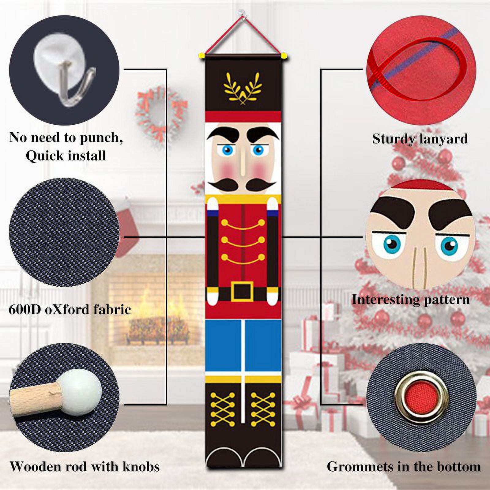FARONZE Bannière de porte casse-noisette de Noël pour intérieur et extérieur - Décoration de maison moderne pour porte d'entrée, salon, cuisine, fête murale Nos panneaux de porche de Noël sont fabriqués en tissu polyester de qualité, se décolorent pas se cassent pas facilement, sont légers pratiques à transporter à accrocher, surface lisse est lavable ; ils peuvent résister aux froides nuits pluvieuses d'hiver rester neufs sous le le lendemain ; s'ils sont stockés correctement, vous pouvez continuer à les utiliser l'année suivante. Decoration Noel Xxl NHYDZSZ 30 X 180 Cm Bannière De Noël Casse-Noisette Décorations De Signe De Bannière De Porche De Noël Soldat Modèle Casse Noisette Bannières, Pour Porte D'entrée, Maison, Jardin (C Spécifications : Matière : Polyester Dimensions : environ 180 x 30 cm Contenu : 2 panneaux de Noël à suspendre Remarques : Mesure manuelle, de légères erreurs de taille sont possibles. Pré-assemblés, ils sont prêts à être utilisés en intérieur en extérieur. Il ajoutera une touche de Noël à votre porte d'entrée ou à votre salon apportera une touche de douceur à votre intérieur. Jour des Morts Couverture de porte Bannières extérieures Squelette... LINGSFIRE Lot de 2 bannières de Noël en Forme de Casse-Noisettes pour Bannière « Noël », bannière « Bienvenue à Noël » couplets décoratifs pour fêtes de Noël sont des signes de bienvenue pour vos invités. Les rideaux de porte de Noël sont de magnifiques décorations de Noël. couleur peut varier légèrement en fonction des paramètres d'affichage.