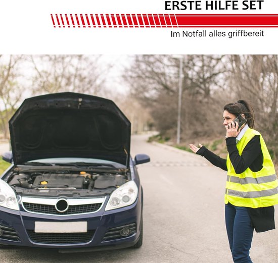 Tout ce dont vous avez besoin au même endroit :Parfaitement équipé pour les cas d'urgence. Triangle de signalisation, gilet de sécurité, trousse de secours Le sac peut facilement être rangé n'importe où, le mieux étant de le placer directement sous le siège passager. Ainsi, vous pouvez facilement le ranger séparément. Contenu :Sac de sécurité Safelight multifonction 4 en 1, avec gilet de signalisation, kit de premiers secours, triangle de signalisation équipement Sécurité Routière MR-Style WAIZHIUA Kit De 12 Outils D'urgence Pour Voiture, Kit De Sécurité Automobile Avec Triangle De Signalisation, Gilet Haute Visibilité, Marteau De Sécurité De Voiture, Sac De Rangement Kit De Premier Secours Une bande velcro à l'arrière offre un maintien sûr. Conseil :grce à des dimensions compactes, le sac Trio est particulièrement indiqué pour les petites voitures mais aussi pour d'autres véhicules tels queles motos ou les quads. Kit de premiers secours conforme à la norme DIN 13164., Gilet de sécurité conforme à la norme EN 471., Triangle de signalisation à la norme Euro. Le kit de premier secours est équipé de tout ce qui est nécessaire selon la nouvelle norme DIN 13164., En outre, un petit guide (français non garanti) est fourni avec les principales mesures d'urgence en cas d'accident, pour vous mettre à jour rapidement. plus de choix, plus d'économies Frontière de tendance Prix de gros Le gilet taille unique est conforme à la norme EN 20471 classe 2, le triangle de signalisation est conforme ECE et en plus emballé dans une boîte en plastique. Sac combiné pour voiture (3 en 1) selon la norme actuelle 2024 - avec...