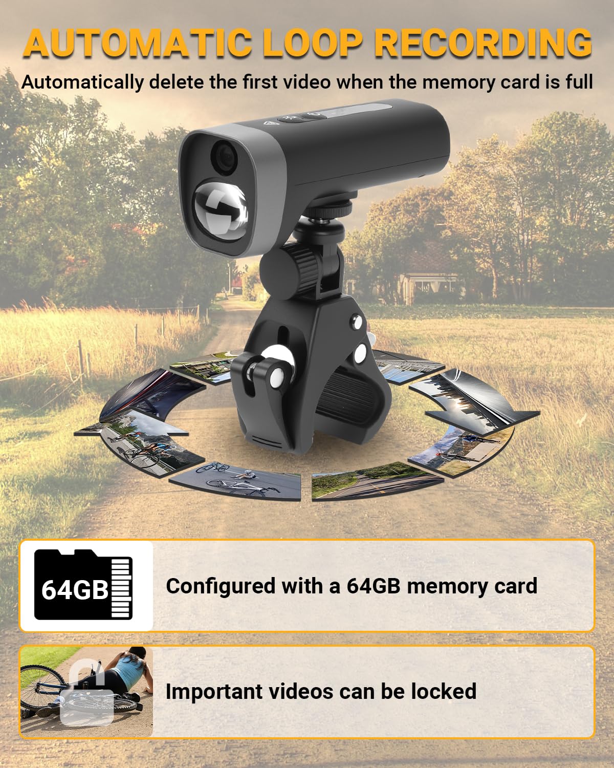 Caméra Embarquée Pour Moto CEMOFE 1080P HD Caméra Moto Embarquée Caméra Velo Guidon Caméra Guidon éclairage Intégré WiFi Alimenté par une batterie longue durée de 2 600 mAh, CEMOFE Camera Velo Route capture jusqu'à 4 heures d'images en continu. Prévisualisez, revoyez et téléchargez instantanément vos vidéos directement sur votre téléphone, sans retirer la carte mémoire. Idéal pour les trajets en ville ou les chemins de campagne, CEMOFE Caméra Velo Guidon vous rend visible et en sécurité, transformant les accidents de justesse en preuves tangibles. 【Contenu】1x CEMOFE Caméra Moto Embarquée, 1x support de montage, 1x carte TF 64 Go, 1x câble de charge Type-C et 1x manuel d'utilisation. Pour toute question, n'hésitez pas à nous contacter. Le câble de charge fourni ne permet pas le transfert de données. Capturez chaque instant sans recharge fréquente ni manipulation manuelle. Description du produit CEMOFE Caméra Moto Embarquée Nos 5 Meilleures Caméra Embarquée Moto en France - Janvier Éclairez votre chemin et immortalisez chaque instant avec CEMOFE Caméra Velo Guidon. Installation de caméra embarquée sur moto : guide complet 【Support Rotatif et Antivol】le support polyvalent CEMOFE Caméra Moto Embarquée s'adapte à la plupart des guidons (14 à 46 mm) et s'installe sans outil en quelques secondes. 3 Modes D'éclairage 【Autonomie Longue Durée de 2600mAh】avec sa batterie de 2600 mAh, le CEMOFE Camera Velo Route offre jusqu'à 4 heures d'enregistrement continu. Filmez chaque trajet en HD 1080p, tandis que le faisceau lumineux traverse les routes sombres et le brouillard grâce à 3 modes. L'installation de CEMOFE Camera Velo Route prend quelques secondes et le support réglable s'adapte pratiquement à la plupart des vélos ou motos. Son système de démontage rapide permet de détacher l'enregistreur d'un seul geste pour éviter le vol. Mini Camera Sport 4K UHD WiFi avec Écran 64GB, 150° Grand Angle & IP65 Étanche Caméra 360 Moto, Anti-Vibration Portable Camera Velo – Idéal pour Les Activités Sportives et de Plein Air L'application vous permet de gérer votre contenu où que vous soyez. 【Partage via App et Wi-Fi】Restez connecté où que vous soyez grâce au Wi-Fi 2,4 GHz de CEMOFE Caméra Moto Embarquée et à son application dédiée.