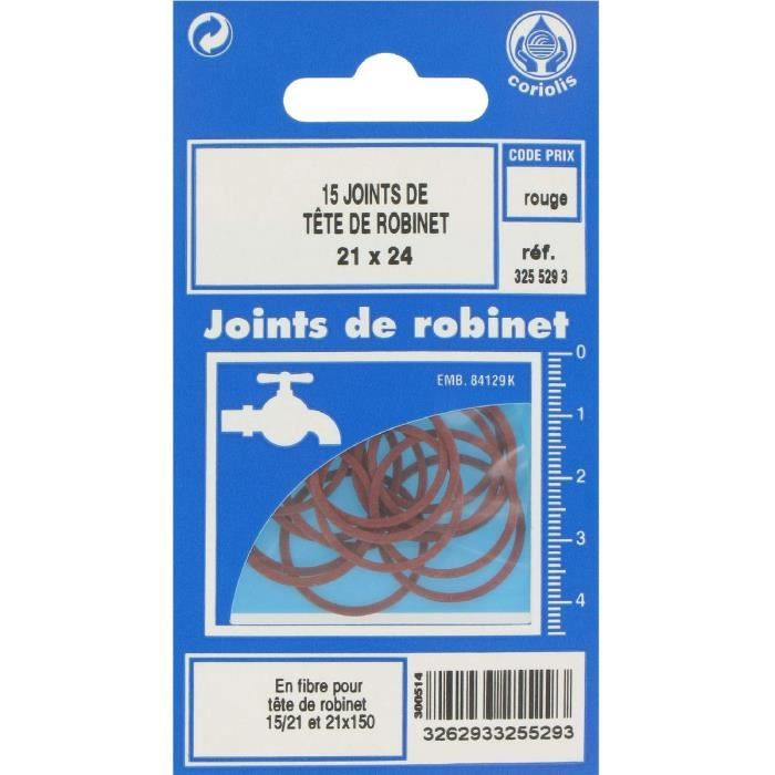 Lot 5 Joints Robinetterie COAP Coffret De 100 Joints Fibre Pour Raccord - Assortient De Joints Fabrication Française Lot de 5 Joints Fibres 23 x 27 pour tête de Robinet COMAP Matière principale sur la masse totale du produit 2643u000b Taille des joints (en mm) 18/21 Indication du geste de tri (triman) Nos produits et emballages peuvent faire l'objet d'une consigne de tri. Pour en savoir plus 5 joints fibre tête de robinet , Dimension 18x21 , Fabriqué en France LINSTAN - robinet d'arrêt WC équerre à tête potence (standard 12x17