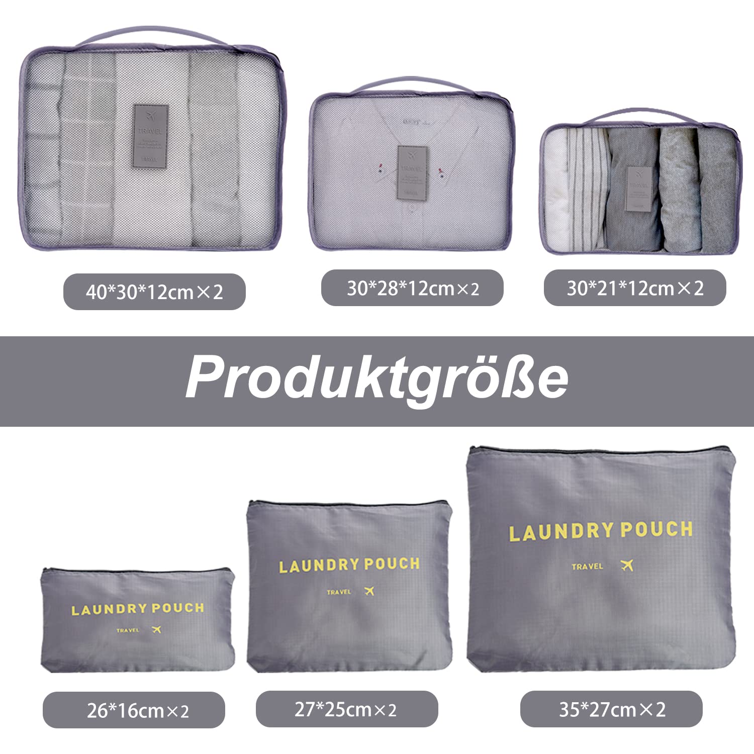 Lot De 12 Organiseurs De Valise, Pour Les Chaussures, Les Vêtements, Les Produits Cosmétiques, Etc. Sacs De Rangement Pour Les Voyages, Gris