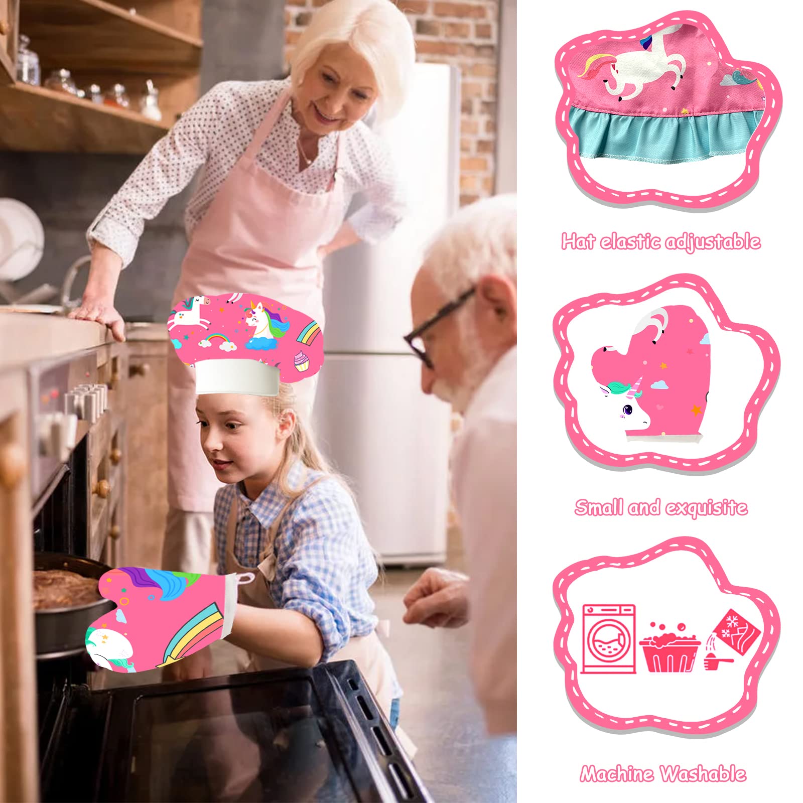 Kit complet: Inclut un tablier, une toque de cuisine, un gant de four et un dessous de plat, fournissant tout le nécessaire pour les aventures culinaires quotidiennes de vos enfants Ajustement personnalisé: La taille du tablier est de 51 x 41 cm, avec des sangles réglables au cou et à la taille, parfait pour les enfants âgés de 3 à 8 ans pour des jeux de rôle amusants Facile à nettoyer: Le kit de cuisine pour enfants est facile à entretenir, pouvant être lavé en machine ou à la main, sans crainte de salir le tablier Ustensiles à Pâtisserie Gemeer 34PCS Cuisine Et Pâtisserie Set - Tablier Enfant, Toque Cuisinier, Gant, Costume Kits De Jeu De Rôle Pour Garçon De 8 à 12 Ans(Rose Tablier Toque Gant Enfant Coffret pâtisserie pour enfants - Ustensiles Ourson Ainiv Balles Anti-Stress Colorées Fidget Balls, 4PCS 5c Boule Anti Stress pour Enfant et Adulte... JEU DE RÔLE d'Outils Pour Enfants Boîte De Transport Construction