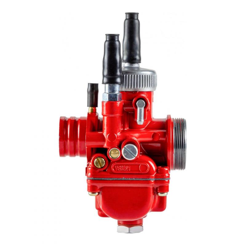 Il est généralement installé sur des 50cc avec un kit haut moteur de 70 à 90cc. Le carbu et la cuve sont en aluminium ce qui permet d’éviter les déformations et d’assurer une étanchéitéparfaite. Red édition – Le carbu est entièrement conçu en aluminium afin d’améliorer le poids et les performances du carburateur, cette version spéciale possède un usinage en micro rayage qui permet d’avoir moins de rebonds et une meilleure performance. Puit d’aiguille de type AN en taille 262 Notamment au niveau du mélange air essence. Performance –Vous pouvez l’installer sur des motos équipées de carburateurs de tailles inférieures ou égales afin d’augmenter le flux d’air et d’essence injecté à votre moteur et obtenir plus de puissance et de couple Boisseau rond : 40 degrés Il a également une prise de dépression, qui n’est pas obligatoire et qui peut être obstruée. Gicleur de starter : taille 60 Il possède un graissage séparé qui est optionnel, l’obturateur est fourni Carburateur Phbg Avec Starter Câble Mota Carburateur For PHBG 21 Mm Racing Red Edition DS Rouge En Aluminium 2 Temps Moto Scooter Quad Pour 50cc Carbu Starter Carbu Réglage Rapide Aiguille Gicleur Le légendaire Carburateur 21mm PHBG Red Edition est le dérivé du PHBG classique mais issu de la compétition moto. Il a été mis au point afin d’améliorer les performances et de réduire la consommation Option – Le carburateur est monté de base avec un starter à câble, qui peut être remplacé avec un starter manuel. Carburateur Dell'Orto 21 mm PHBG DS - Black Edition Réglage racing – Ce carburateur est l’amélioration sportive du PHBG classique. Ce carburateur en édition rouge se distinguera parmi tous grâce à son look sportif Graissage séparé (possibilité de l’obstruer) Carburateur Dellorto PHBG 21 mm - Scooter System Gicleur de ralenti : taille 50 Différents systèmes de filtration peuvent être installés, boite à air, cornet, cône en mousse voire une admission libre. Il peut donc être installé sur toutes les admissions de cette dimension. Il a également été doté d’accès rapide de l’aiguille et du gicleur principal, pour permettre un réglage plus rapide et plus facile du carburateur.