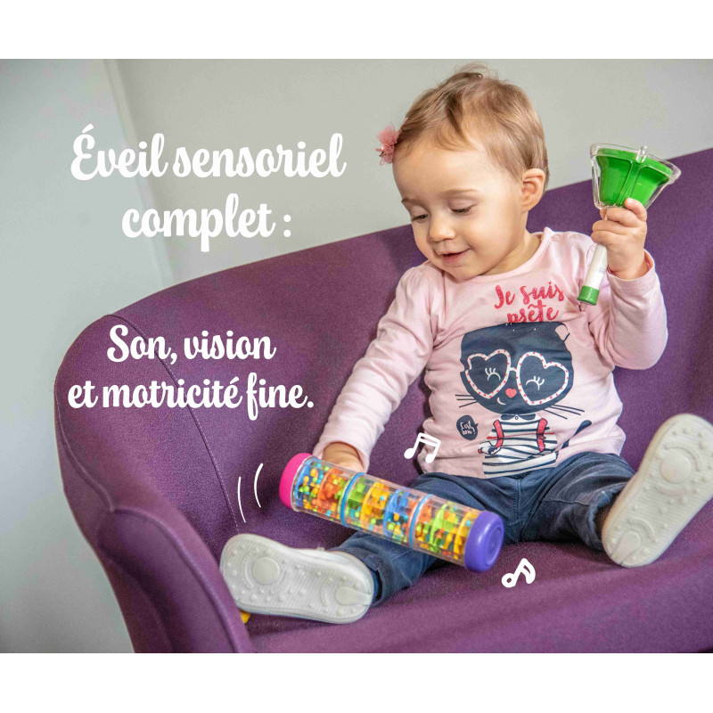 Apprentissage Ludique : Ce jouet pluie encourage le développement cognitif précoce et affine la coordination œil-main en utilisant des retours auditifs-tactiles, créant un éducatif dynamique pour les . Poignée Ergonomique : Ce hochet pluie favorise le développement musculaire et la motricité fine grâce à sa poignée ergonomique spécialement conçue pour encourager l'entraînement au contrôle moteur des bébés ; sa forme unique stimule naturellement la prise en main sécurisée Robustesse accrue : La combinaison de matériaux bois et PP solides et d'un polissage approfondi multi-étapes confère à ce jouet bébé une grande robustesse. Bâton de pluie bébé - Instrument de Percussion d'éveil musical Sa conception lisse assure une exploration tactile sécurisée et une durabilité remarquable pour un usage prolongé. Découvrez notre magnifique bâton de pluie en bois Montessori, un instrument musical sensoriel qui émerveillera les enfants par ses couleurs vives de l’arc-en-ciel et ses sons apaisants Bébé Orchestra Bâton De Pluie Montessori Pour Bébé - Hochet Musical Arc En Ciel Hochet Musical Bébé Motricité Fine Le bâton de pluie est un jouet sensoriel qui s’inscrit parfaitement dans la méthode Montessori, favorisant l’éveil et le développement des bébés. Cet instrument de percussion, souvent fabriqué en bois, reproduit le son apaisant de la pluie grâce à des grains ou des perles qui se déplacent lentement à l’intérieur d...