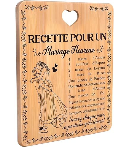 Planche Découpe Déco Cuisine Sentimentale GevGuxLuo Ensemble De Planches à Découper Rectangulaires En Bambou Pour Mariage, Mariage, Fête Prénuptiale, Fiançailles, Anniversaire, Cadeau Mr & Mrs Décoration De Cuisine Sentimentale Pas seulement Noël, mais aussi les anniversaires de la famille et des amis ou tout autre jour ordinaire. Cadeaux Mr & Mrs ] - Nos cadeaux de mariage sont fabriqués en bambou naturel, respectueux de l'environnement et facile à laver. Ils seront un élément incontournable de votre cuisine, témoin de vos moments de cuisine ensemble, tout en vous permettant de ressentir l'amour et l'attention de chacun Parcourez notre sélection de planche à découper en bambou pour mariage : vous y trouverez les meilleures pièces uniques ou personnalisées de nos boutiques 💯【 Matériel de Sécurité 】La planche à découper est faite de bambou 100% naturel, sûr et fiable. Non seulement une planche à découper, mais aussi une décoration. Quel cadeau faire à ma meilleure amie 🎉【 Le meilleur Choix de Cadeaux 】Cet article de cuisine amusant pour la maison est parfait pour donner à votre famille ou à vos amis en toute saison des fêtes. Caractéristiques: 1., Les mots avec une signification spéciale donnent à cette planche à découper une signification spéciale. Contactez - nous si vous avez des questions. Gravée d’ingrédients symboliques – amour, bienveillance, humour –, elle incarne l’alchimie d’un couple complice. Après réception des marchandises, nous pouvons vous rembourser intégralement tout problème de qualité. Et il est également facile à nettoyer et ne laisse pas facilement les restes de nourriture. La poignée est facile à transporter et à transporter. C'est le premier choix pour donner des cadeaux., 2., Le matériel fort le rend pas facile à endommager, ainsi il peut être stocké plus longtemps et peut même être stocké., 3., Approprié pour manipuler toutes sortes d'aliments, facile à nettoyer et sans pression pour l'utilisation., Spécifications: 1., Matériel: 100% bambou naturel 2., Taille: 21., 5x27., 5x1cm 3., Poids: 362 grammes Note: 1., La couleur de l'image et de l'affichage physique peut varier légèrement en fonction de la lumière et du bambou naturel, mais cela n'affecte pas l'utilisation et la beauté., 2., Les tailles ci - dessus sont toutes mesurées à la main, sous réserve de la réception réelle des marchandises.