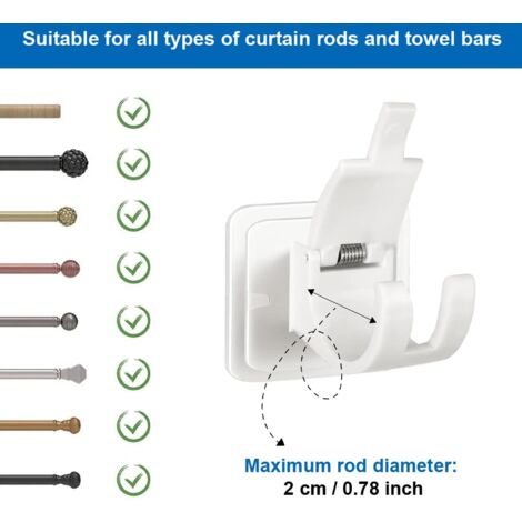 Accroche rideau sans percage Support de tringle autocollant pour accrocher des rideaux ou des porte-serviettes Convient pour : bois (propre, lisse), contreplaqué, verre, acier inoxydable, etc. Support tringle rideaux Il y a un autocollant 3M au dos, qui peut être collé directement sans poinçonner. Pour la fixation de rideaux et tringles à rideaux de douche. 【PRODUITS POUVANT ÊTRE REÇUS】Dans un seul paquet,4 crochet rideau sans perçage sont inclus, assez pour l'utiliser et le remplacer au quotidien. la super colle à l'arrière du support peut être fermement collée à n'importe quel endroit que vous souhaitez coller, solide et durable, et l'adhérence à haute résistance permet à chaque crochet de supporter 10 kg ; peut être collé dans la salle de bain, la cuisine, le salon, la cave à vin et plus encore 12 Support Tringle Rideaux sans Percage, Accroche Rideau sans Percage... Matériau : plastique, super colle , Couleur :transparent , Poids : 10 kg Si Vous ne l'utilisez plus,nos crochets adhesifs rideaux adhésifs sont également faciles à retirer Il est robuste et durable, avec du plastique de haute qualité et des ressorts solides. 【ACCROCHE RIDEAU SANS PERCAGE】Nos produits sont composés d'ABS de haute qualité, à haute dureté et difficiles à déformer. RA09690-Lot de 20 Supports Crochets adhésifs Autocollant pour Tringle Fabriqué en plastique de haute qualité, non toxique et sans goût. Ouvrez le sceau de la super colle, ne laissez pas tomber d'objets étrangers dessus pour affecter l'adhérence. Convient à une variété de scénarios La position d'insertion ducrochet rideau peut être ajustée en fonction de la longueur de chaque tringle. Support Adhesif Rideau Douche Porte-serviette Boutihao Support Rideau Sans Percage Crochets Supports De Tringle Auto-AdhéSifs Pour Rideaux Suspendus Ou Porte-Serviettes (Lot De 4 Support Tringle Rideaux Vous pouvez également partager avec votre famille et vos amis, ce qui apporte un grand confort Taille: Bord extérieur 6*6 cm/Intérieur 4., 5*3., 5 cm