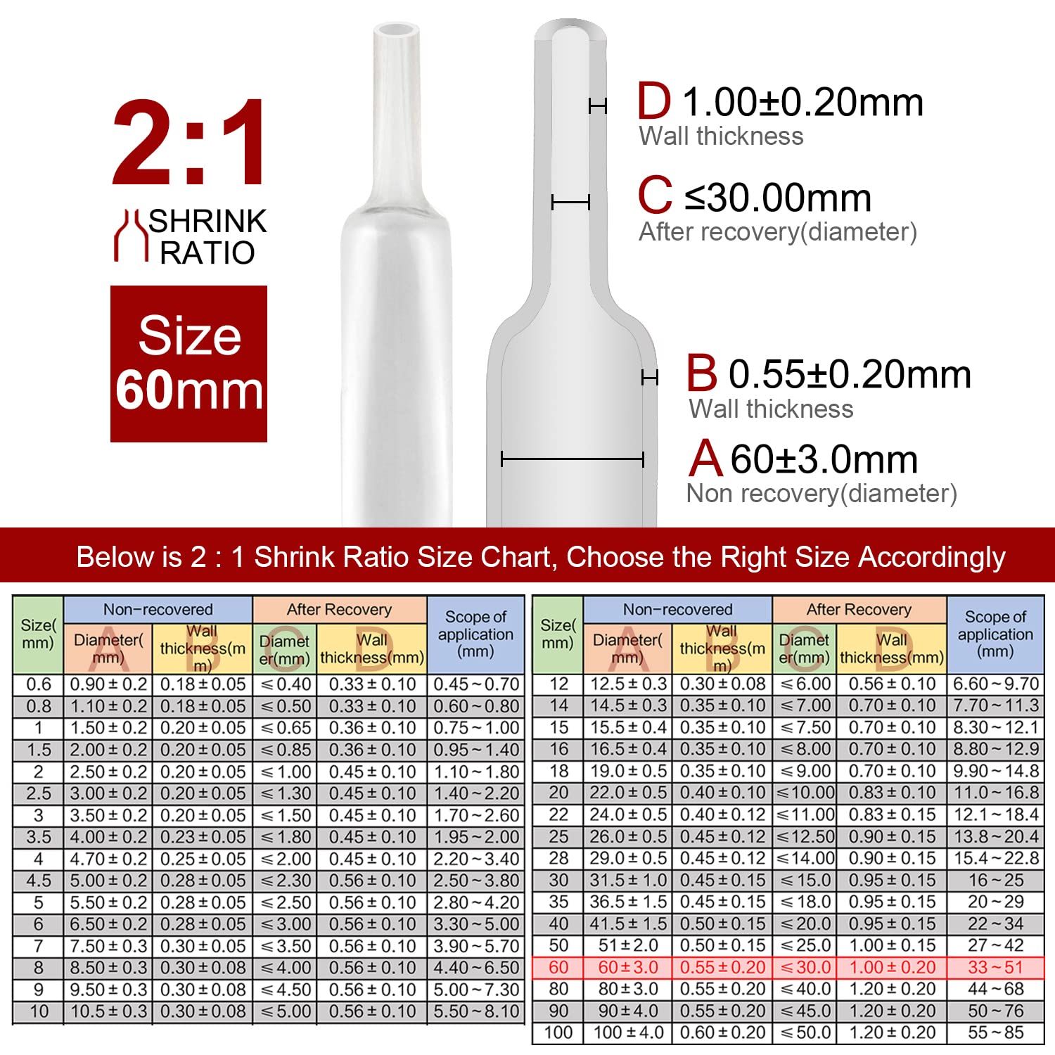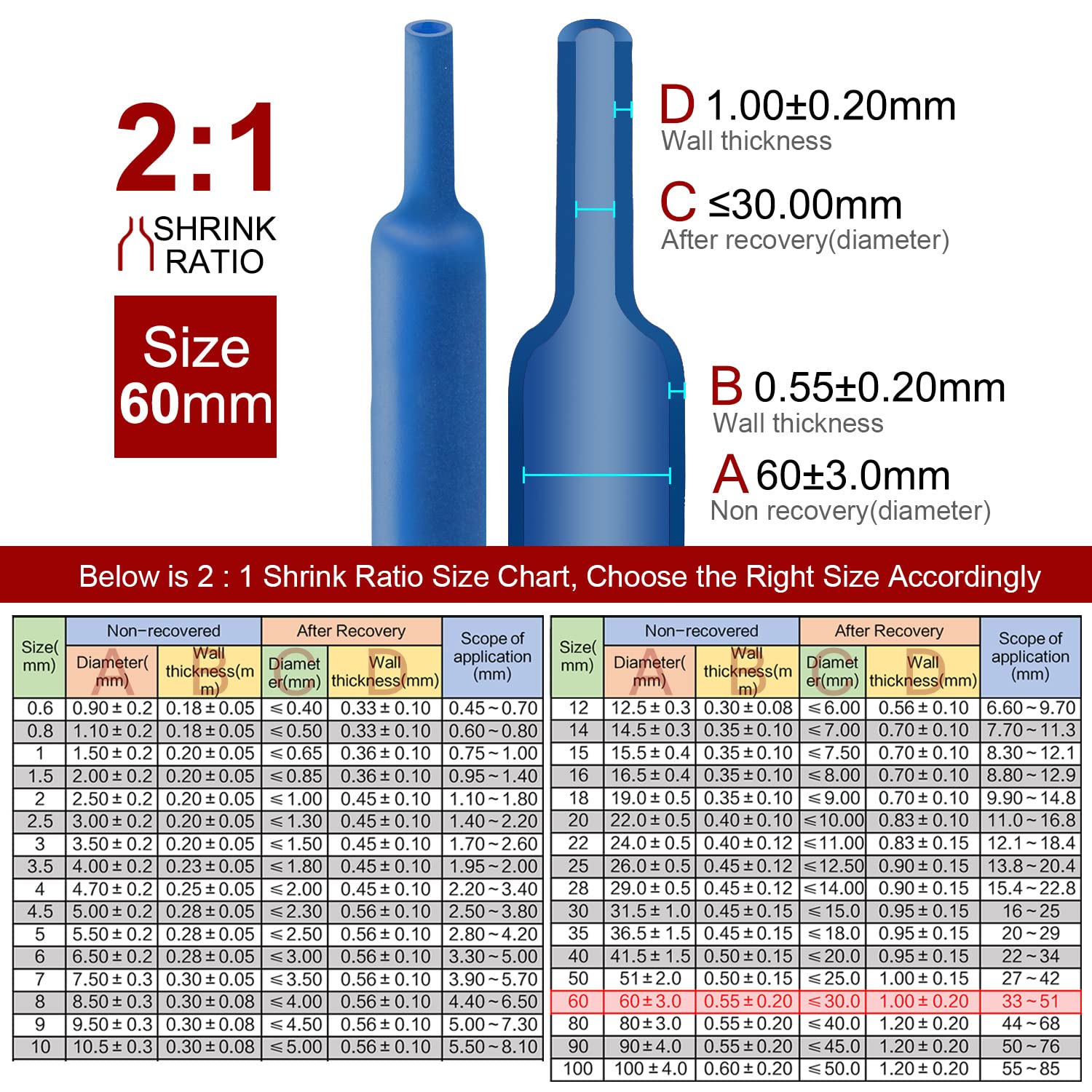 Bonne étanchéité - Notre gaine thermorétractable 2/1 présente les avantages d'une bonne isolation électrique, d'une bonne étanchéité et d'une bonne résistance à la corrosion, de retardateurs de flamme VW-1, d'un fil rétractable résistant aux hautes températures. Rapport 2-1 - rétrécit à 1/2 de son diamètre d'origine et fait un joint étanche, diamètre 2-3/8 (2,4 pouces) (60 mm), 3,3 pieds de long, veuillez consulter le tableau des diamètres (image 3). FACILE À UTILISER - Choisissez la bonne taille dont vous avez besoin et glissez simplement les tubes thermorétractables sur votre point de connexion et appliquez de la chaleur autour de 70-105 ℃ uniformément avec un pistolet à air chaud. CONNECTEUR CRIMP GAINE Thermorétractable Butt à Sertir Mâle Câble Kit APPLICATIONS - Les tubes thermorétractables sont principalement utilisés pour la réparation industrielle, les navires, l'automobile, les liaisons filaires, la protection antirouille et anticorrosion des joints de soudure et le bricolage audio et électrique. Gaine thermorétractable noire 12,0 mm rouleau 8 m - Cablematic Gaine Thermoretractable Avec Colle Quadrios 25CA503 Gaine Thermorétractable Avec Adhésif Transparent Taux De Retraction31 5 M 1 X Gaine 61313178 Isolation électrique 600V -55°C à 125°C 3M GTI 50,8/25,4 Gaine thermorétractable à paroi mince, noire, 50,8/25...