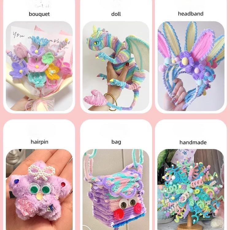 Les tiges en chenille rapprochent non seulement les familles, mais elles peuvent également ouvrir les cœurs et créer des travaux manuels uniques. Les cure-pipes sont de couleurs vives, riches en variété et en quantité suffisante pour répondre à vos besoins quotidiens de bricolage Description du produit : 1., Les cure-pipes colorés pour le bricolage sont parfaits pour le bricolage avec les enfants. Concevoir des bouquets avec des cure-pipes peut stimuler votre créativité et votre imagination. 【Différentes couleurs】: nous avons sélectionné des combinaisons de couleurs populaires et vives. 【Conception de cure-pipe】: Les cure-pipes colorés pour l'artisanat sont parfaits pour les travaux manuels avec les enfants. Tournez et pliez ce nettoyeur de pipe épais pour plier le fil de bricolage en peluche à volonté et ainsi créer des ornements, des animaux, des fleurs et plus encore pour le plaisir de bricoler. Les cure-pipes peuvent être tordus dans n'importe quelle forme que vous aimez pour créer des personnages mignons, des animaux, des fruits, des plantes, etc. et sont largement utilisés dans les cours de bricolage à la maternelle et améliorent et développent l'intelligence et la capacité pratique des enfants Tournez et pliez ce nettoyeur de pipe épais pour plier le fil de bricolage en peluche à volonté et ainsi créer des ornements, des animaux, des fleurs et plus encore pour le plaisir de bricoler., 2., Vous pouvez combiner librement les couleurs et l'unicité. Lot de 3 pelotes de fil chenille de 100 g (3 x 80 ) pour tricot et Accessoires Créatifs Multicolores Lot De 200 Cure-pipes Pour Travaux Manuels, Tiges En Chenille Cure-pipes Souples Pliables Il aide également à développer la reconnaissance des formes, la reconnaissance des bâtiments et d'autres compétences importantes et améliore la pensée logique. Créez des créations florales artistiques à partir de cure-pipes pour donner un peu de vie à votre vie. 【Matériau de haute qualité】: Les cure-pipes sont fabriqués en fil de fer incurvé et en fibre de polyester, qui sont haute définition, transparents, résistants à la déchirure et sans odeur. Les cure-pipes sont fabriqués en fil de fer et en polyester, durables, moelleux, doux et confortables. 【Amusement et créativité】: les cure-pipes en soie chenille sont la touche finale pour les travaux de bricolage et les couleurs vives éveillent le désir de créativité des gens.