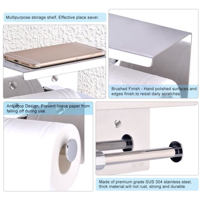 Fabriqué en acier inoxydable SUS304, durable, antirouille et anticorrosion. Aspect élégant et travail soigné, qui ajoute une touche moderne à notre maison, convient à la décoration intérieure et aux espaces commerciaux Porte-papier hygiénique pour salle de bain. Support Mural 2 Rouleaux Salle De Bain Porte-papier Hygiénique Double En Acier Inoxydable Avec étagère De Support Papier Toilette Mural - Couleur : Distributeur de mouchoirs argenté pour salle de bain - Taille : environ 27x7x7cm support de porte-papier toilette - Fabriqué dans un matériau de et durable, garantissant la qualité et la du porte-papier toilette. Porte-papier toilette multifonction : un support peut deux rouleaux , accessoires de salle de bain Accessoires de salle de bain : fabriqués à partir de matériaux de première qualité et durables, garantissant qualité et , porte-papier toilette Porte-Rouleau De Papier Toilette Mural, Porte-Papier Hygiénique En... Double rouleau de papier hygiénique en acier inoxy... - Grandado Distributeur de mouchoirs pour salle de bain. Porte-papier toilette d'hôtel : convient à , à l'appartement, au condo, au bureau, à l'hôtel, au centre commercial, au restaurant , distributeur de mouchoirs pour salle de bain Informations sur les marchandises Porte-papier hygiénique Convient pour une utilisation dans un appartement ou un condo.