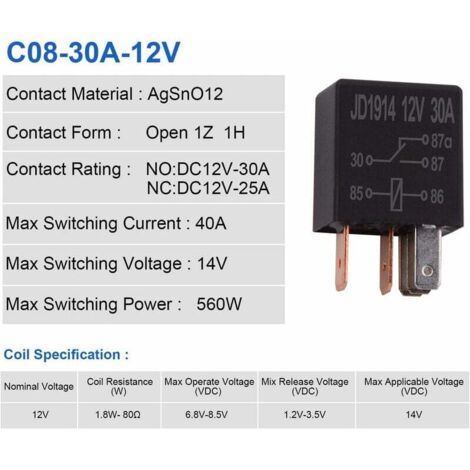 804-1A-C1 Relais polyvalent pour le contrôle de la lampe de tête de commande de climatisation 12VDC 30A 4 broches Fabriqué au Japon selon des normes strictes de qualité, ce relais est conçu pour une performance durable et fiable. Relais SPST 4 Broches 4X 12V 200A Relais A 4 Broches Normalement Ouvert - Charge Fractionnee Relais 12v 30a Doté de 4 broches à connexion rapide, ce relais assure une installation simple et sécurisée. PERFORMANCE OPTIMALE: Temps de réponse de 5ms, résistance de bobine de 80 ohm, tension de fonctionnement de 9V à 14V DC DIMENSIONS COMPACTES: Format compact de 5 cm x 3,5 cm x 3,5 cm, installation facile avec montage enfichable Ce relais de puissance automobile 804 1A C1 R2 est un composant électrique fiable conçu pour les applications automobiles exigeantes. Fonctionnant sous 12V DC, il offre une capacité de commutation impressionnante de 30A avec une configuration SPST (Simple Pôle Simple Throw) normalement ouverte Relais automobile - Achat / Vente pas cher Ses dimensions compactes de 5 cm x 3,5 cm x 3,5 cm en font un choix pratique pour les espaces restreints. CARACTÉRISTIQUES ÉLECTRIQUES: Relais 12V DC avec capacité de commutation de 30A, idéal pour les applications automobiles avec connexion rapide à 4 broches Avec une tension de commutation de 9V à 14V et un temps de réponse rapide de 5ms, ce relais est parfaitement adapté pour les systèmes électriques automobiles.