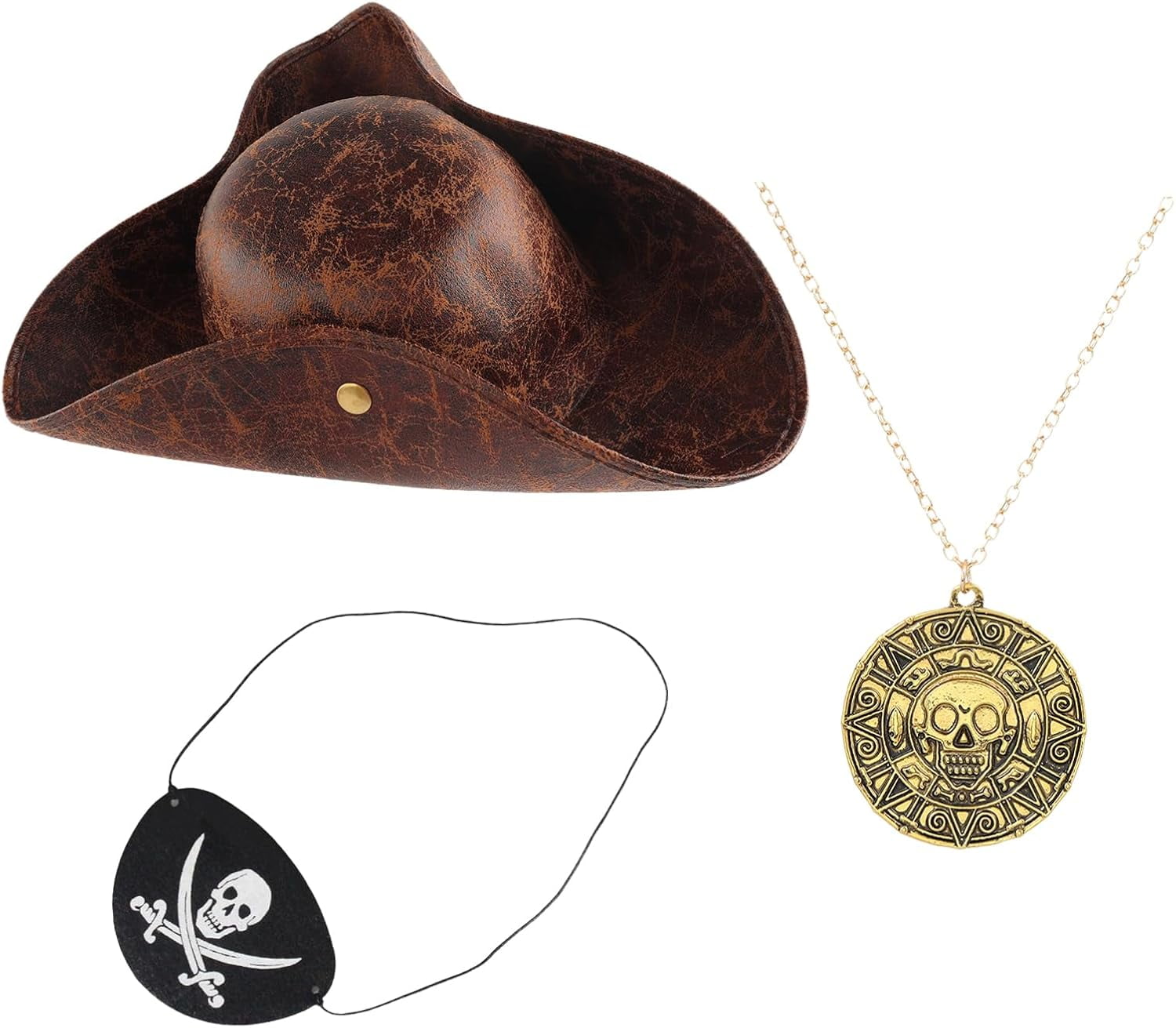 Chapeau De Capitaine Pirate Tricorne En Similicuir Pour Fête à Thème, Cosplay, Carnaval - Noir (1