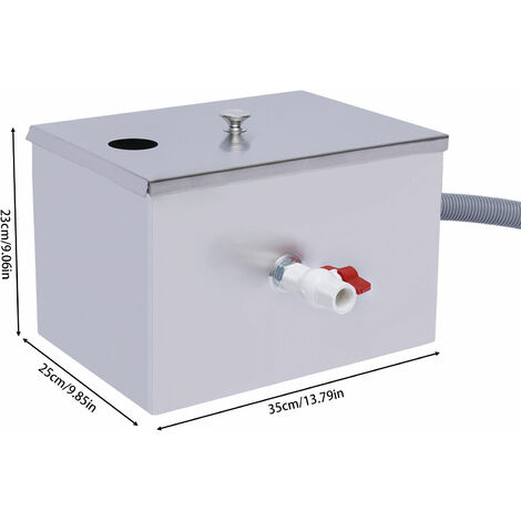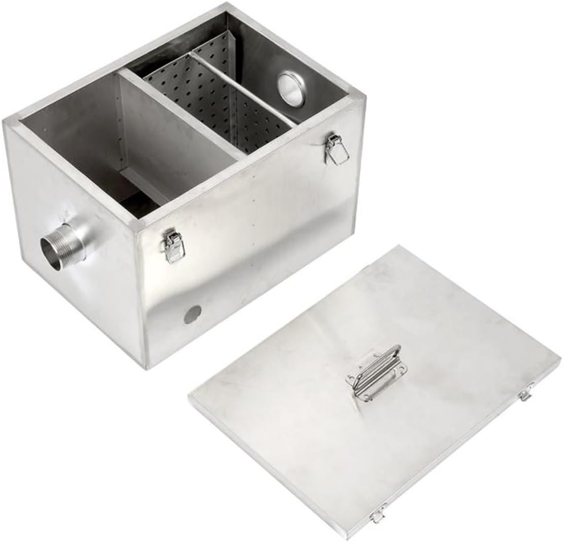 Les solides se déposent fond et l'eau claire séparée s'échappe sous une chicane de sortie. Le réceptacle est conçu pour intercepter ou piéger le FOG tout en permettant à l'eau claire de s'échapper. Détails du produit:Taille: 40X25X25CMComment fonctionne un bac à graisse ?Les pièges à graisse fonctionnent sur la base que les graisses animales et les huiles végétales (graisse) sont de 10 à 15 % moins denses que l'eau et que la graisse ne se mélange pas à l'eau. Les chicanes sur la sortie empêchent le brouillard de s'écouler directement à travers l'appareil. Il a un effet efficace de séparation huile-eau et est idéal pour les applications de cuisine, restaurant, café, usine, école ou petit évier ou lave-vaisselle. Bac A Cafe VEVOR Intercepteur à Graisse Commercial, Séparateur De Graisse 3,6 Kg, Bac à Graisse Entrée Supérieure, Sous L'Évier En Inox, Séparateur Huile-Eau D' Eaux Usées 2,8 GPM, Pour Cuisine Cantine Pour cette raison, le siphon doit être nettoyé/vidangé régulièrement. Principe de fonctionnement: les pièges à graisse fonctionnent sur le principe de base selon lequel les brouillards (graisses, huiles et graisses) flottent sur l'eau et les particules solides coulent. Lorsque les eaux usées pénètrent dans un bac à graisse, le débit est suffisamment réduit pour que les eaux usées aient suffisamment de temps pour se refroidir et se séparer en 3 couches. Filtration pratique sous évier et comptoir : notre séparateur huile-eau convient traitement de l'eau huileuse d'huile minérale, d'huile animale, d'huile végétale, d'huile mélangée et de toutes sortes d'huile émulsionnée. VEVOR Intercepteur a Graisse Acier Inoxydable Separateur de Graisse 300... Qu'est-ce qu'un bac à graisse?Les pièges à graisse existent depuis plus de 100 ans et sont également connus sous le nom d'intercepteurs de graisse, de convertisseurs, de récupérateurs de graisse, de dispositifs de récupération/gestion de graisse ou de pièges à brouillard. La graisse vers le haut à l'intérieur de l'intercepteur et est emprisonnée à l'aide d'un système de chicanes. Matériau de qualité supérieure : le séparateur mécanique huile-eau à gravité est fabriqué en acier inoxydable 201 robuste de 1,2 mm d'épaisseur, qui est robuste, , antirouille, anti-corrosion, difficile à déformer, facile à entretenir et a une longue durée de vie. Ainsi, les graisses et les huiles flottent au-dessus de l'eau. Vous devez vous procurer un dispositif de traitement d’eaux usées, comme le séparateur de graisse pour restaurant de la marque . Découvrez ce produit performant et simple d’installation sur notre site 8LBS Commercial Bac À Graisse, Entrée Supérieure Acier Inoxydable Eaux Usées Intercepteur De Graisse Séparateur Huile-eau Huile-eau Avec Panier-filtre Pour Restaurant Sous Évier, Argent fil du temps, les solides et la graisse s'accumulent et, s'ils s'accumulent suffisamment longtemps, ils peuvent commencer à s'échapper par la sortie et, dans certaines circonstances, ils peuvent refluer par l'entrée.