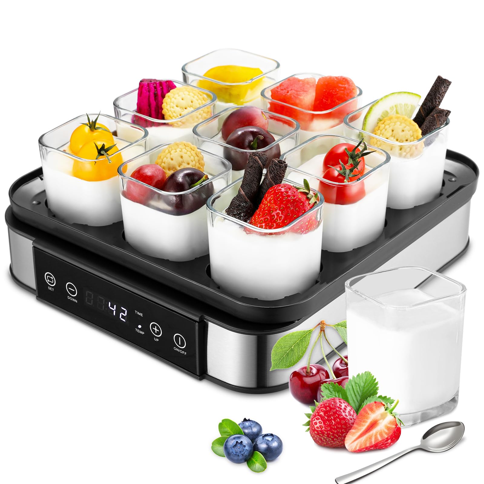 Yaourt Grec Maison Forme Bouilloire Électrique En Verre Thermostat Réglable 1.7 I Contrôle Yaourtière Seb Multidélices 12 Pots Personnalisable Selon Vos Goûts - Réglez le temps (1 à 48 h) et la température (25 à 50°C) pour ajuster la fermeté, l’acidité et l’onctuosité à votre convenance. L’écran LCD intelligent affiche la température et le temps en temps réel, rendant la préparation d’un yaourt parfait simple grâce à un contrôle précis. Commande LCD Simple et Précise Écran clair et intuitif pour régler facilement le temps et la température - des résultats parfaits à chaque utilisation. 12 Pots en Verre Sans BPA: Préparez jusqu’à 12 délicieux parfums de yaourt à la fois, du style grec crémeux aux mélanges fruités ! Compacte & Économe en Énergie: Avec ses dimensions de 37,7 x 27,1 x 14 cm, cette yaourtière de 25W économise de l’espace sur le plan de travail tout en assurant un fonctionnement silencieux, sûr et économe en énergie. Lavables au lave-vaisselle et portables pour un nettoyage facile et une fraîcheur à emporter. Elle maintient une température constante pour activer les probiotiques, créant un yaourt crémeux et épais sans effort. Description du produit Yaourt Frais et Sain - À Votre Façon, Chaque Jour Imaginez vous réveiller avec de petits pots de yaourt maison, lisse et onctueux - acidulé ou doux, fruité ou nature, exactement comme vous l’aimez. Yaourtière 7 pots de 180ml machine à yaourt électrique en Des Résultats Parfaits, À Chaque Fois Chaleur à 360° - Chauffage doux et homogène dans chaque pot pour un yaourt soyeux et sans grumeaux. Minuterie pour machine à laver semi-automatique,double cylindre,3 fils... Design compact et élégant qui s’intègre parfaitement à toutes les cuisines. Économe en Énergie & Silencieuse - Moteur basse consommation de 25W pour réduire vos factures tout en fonctionnant en silence, idéal pour une préparation de nuit. Yaourt Maison Personnalisé: Créez facilement un yaourt frais et sain en seulement 3 étapes ! Inclus : 1 Yaourtière, 12 pots en verre avec couvercles, 1 guide d’utilisation Caractéristiques Techniques Matériaux : Acier inoxydable, Polypropylène (PP), Verre , Puissance : 25 W Yaourt Maison en 3 Étapes Simples 1., Mélanger & Préparer - Combinez du lait frais avec votre ferment préféré., 2., Remplir & Fermer - Versez dans les pots en verre, fermez avec les couvercles et placez-les dans la machine., 3., Régler & Déguster - Sélectionnez le temps et la température, puis laissez la machine transformer vos ingrédients en un yaourt onctueux, prêt à refroidir, servir et savourer. Présentation du produit Yaourtière Électrique avec 12 x 180 ml Verre, Thermostat Réglable, Minuterie, Machine à Yaourt Maison en Acier Inoxydable, Design Convivial: Conçu avec un boîtier en acier inoxydable haut de gamme pour une durabilité et une résistance à la chaleur supérieures Bien Plus Que du Yaourt Smoothies au yaourt , Sauces & Dips, Yaourt glacé, Bols petit-déjeuner Design Convivial: Conçu avec un boîtier en acier inoxydable haut de gamme pour une durabilité et une résistance à la chaleur supérieures.